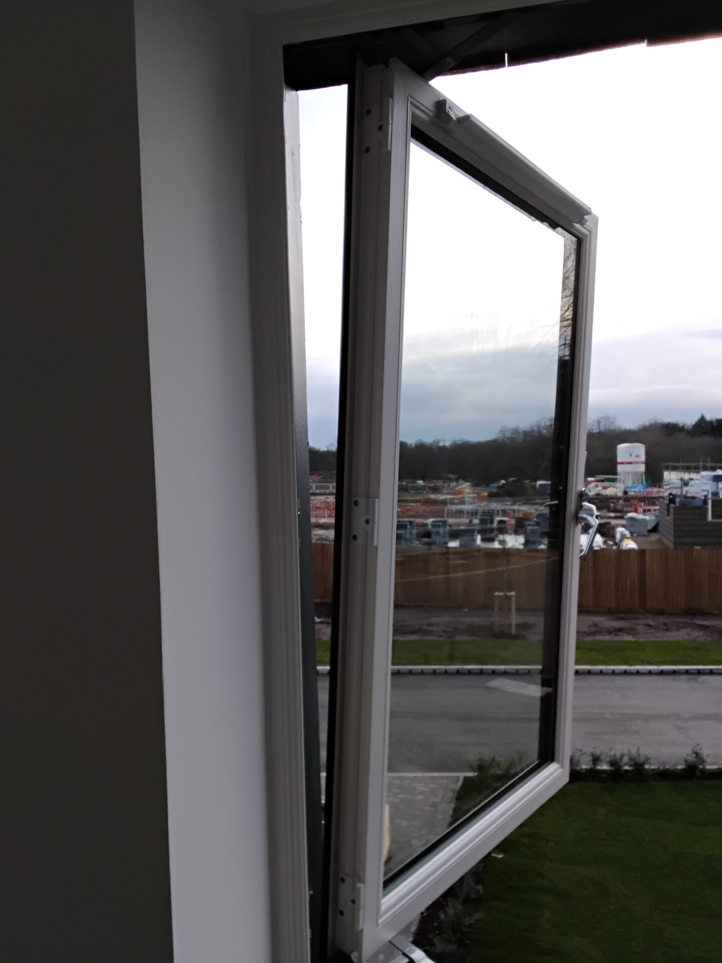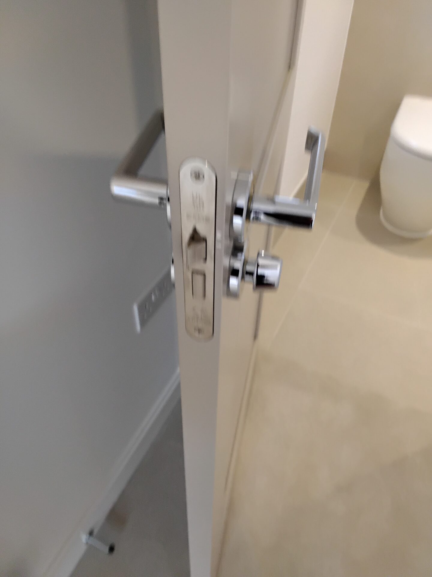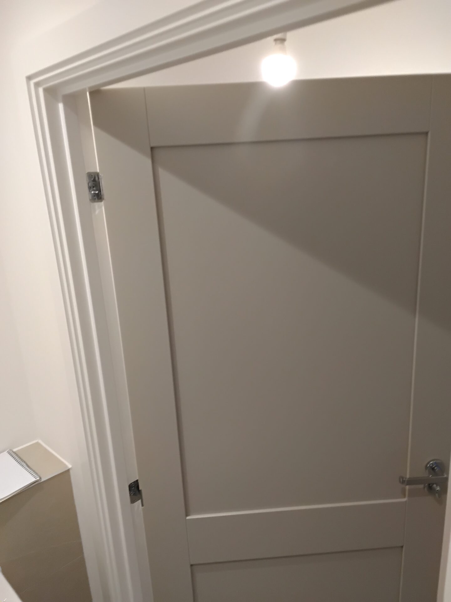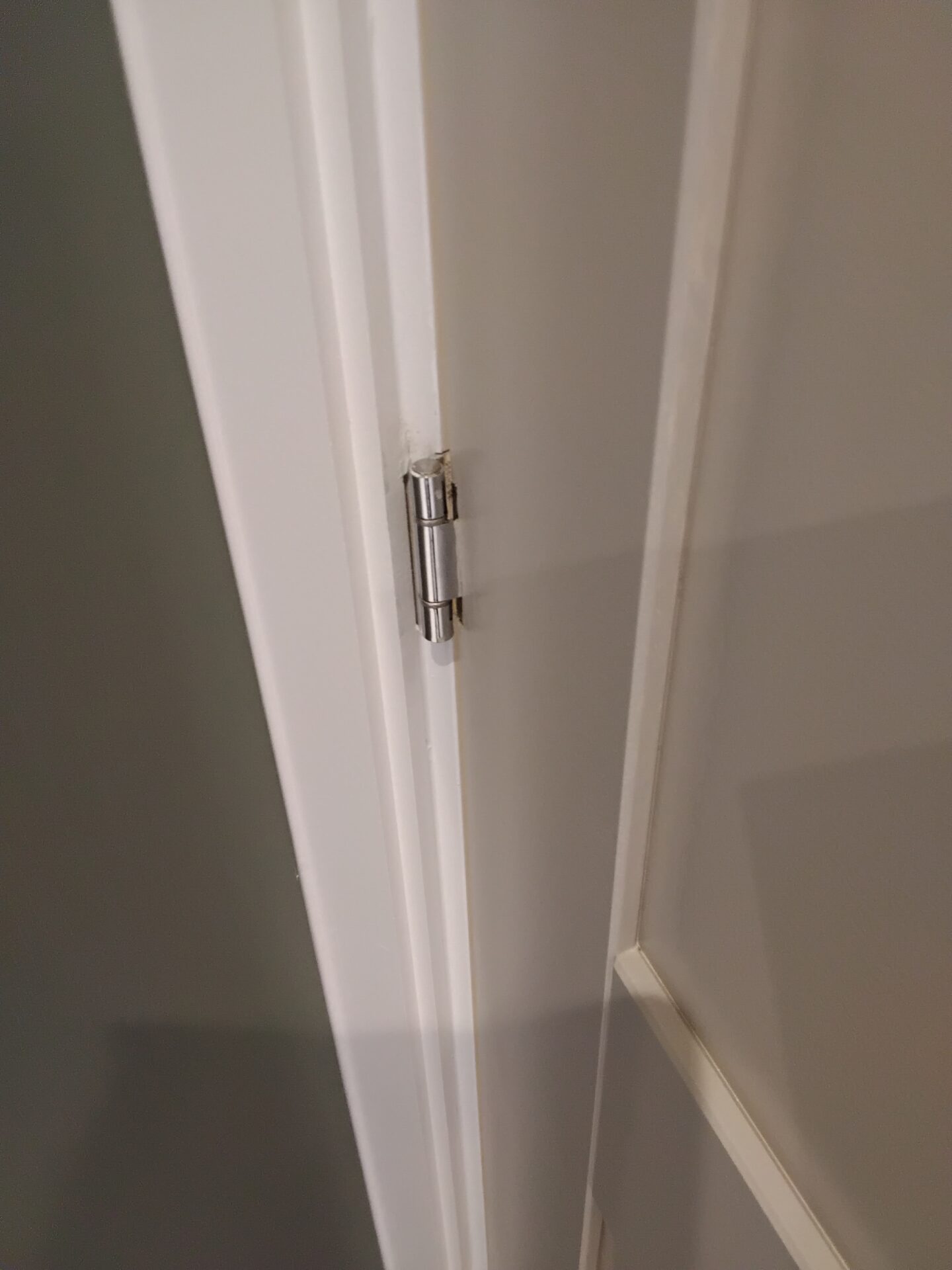 Lead door of the double doors, does not operate smoothly, seems to catch on the hinges