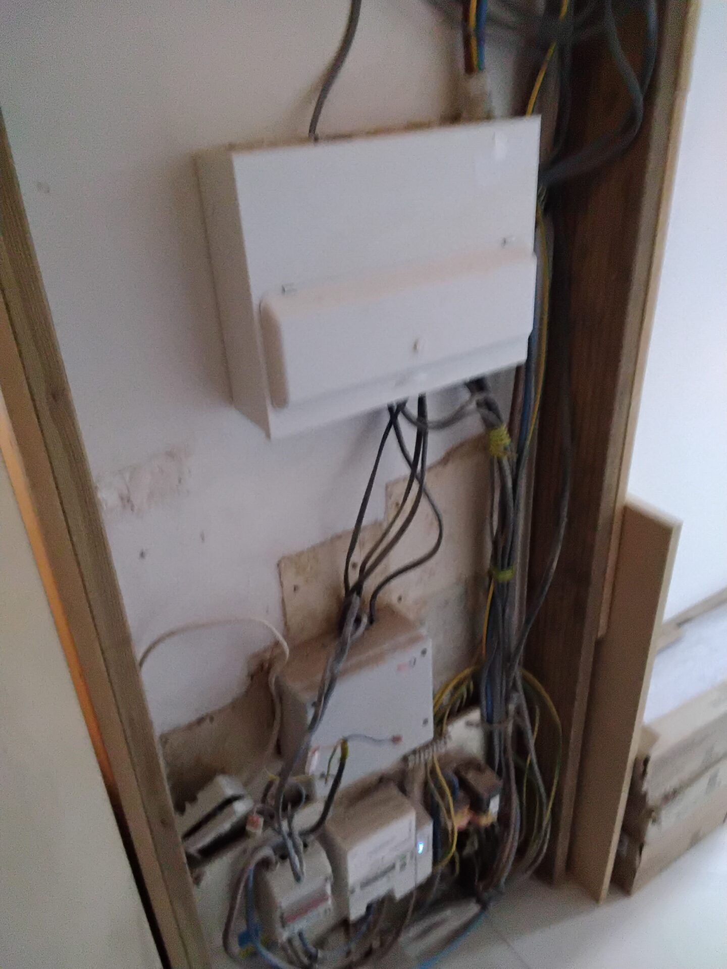 Cables around the consumer unit need to be clipped back to the wall.