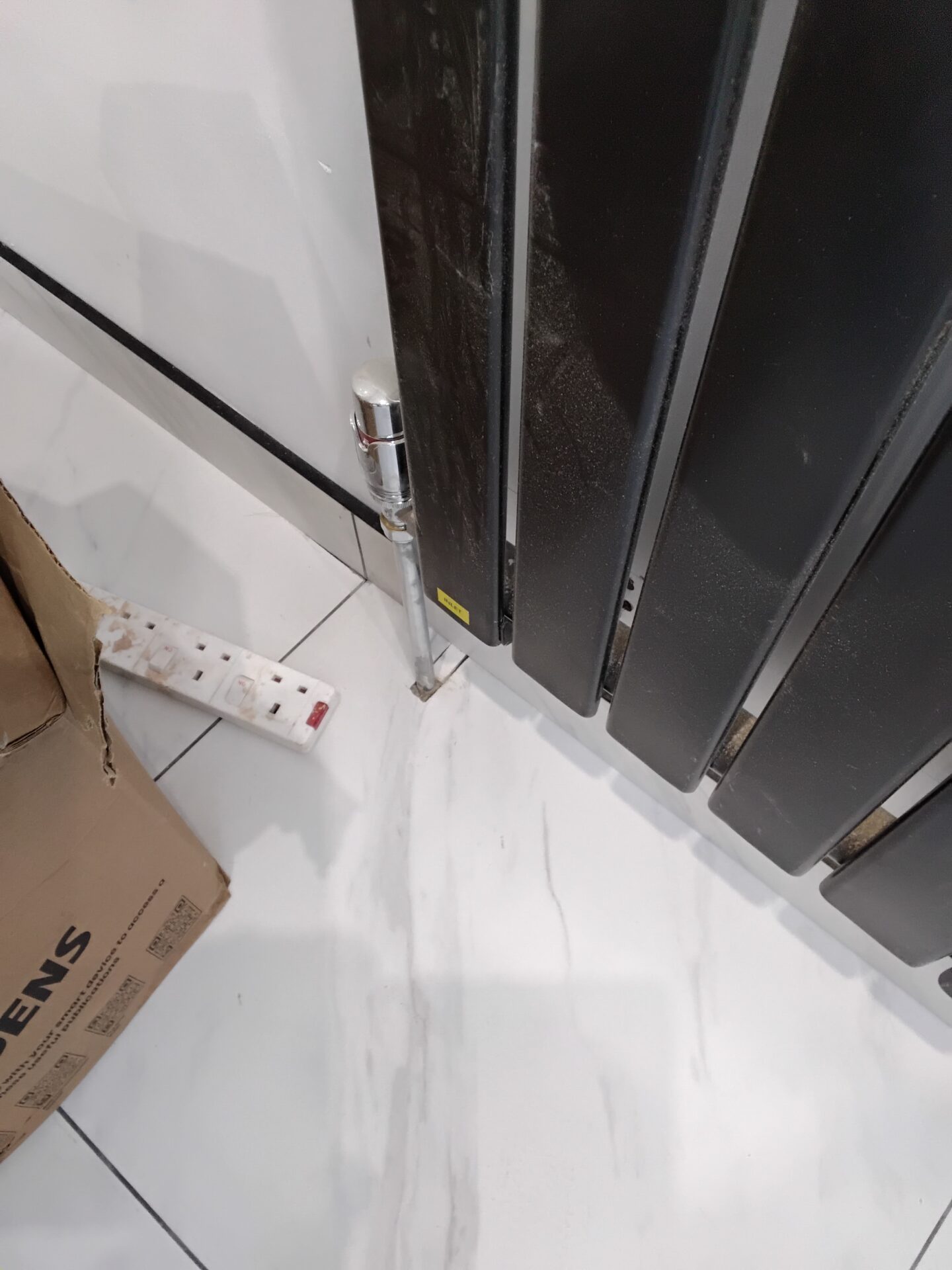 Rough tile cuts around radiator pipes