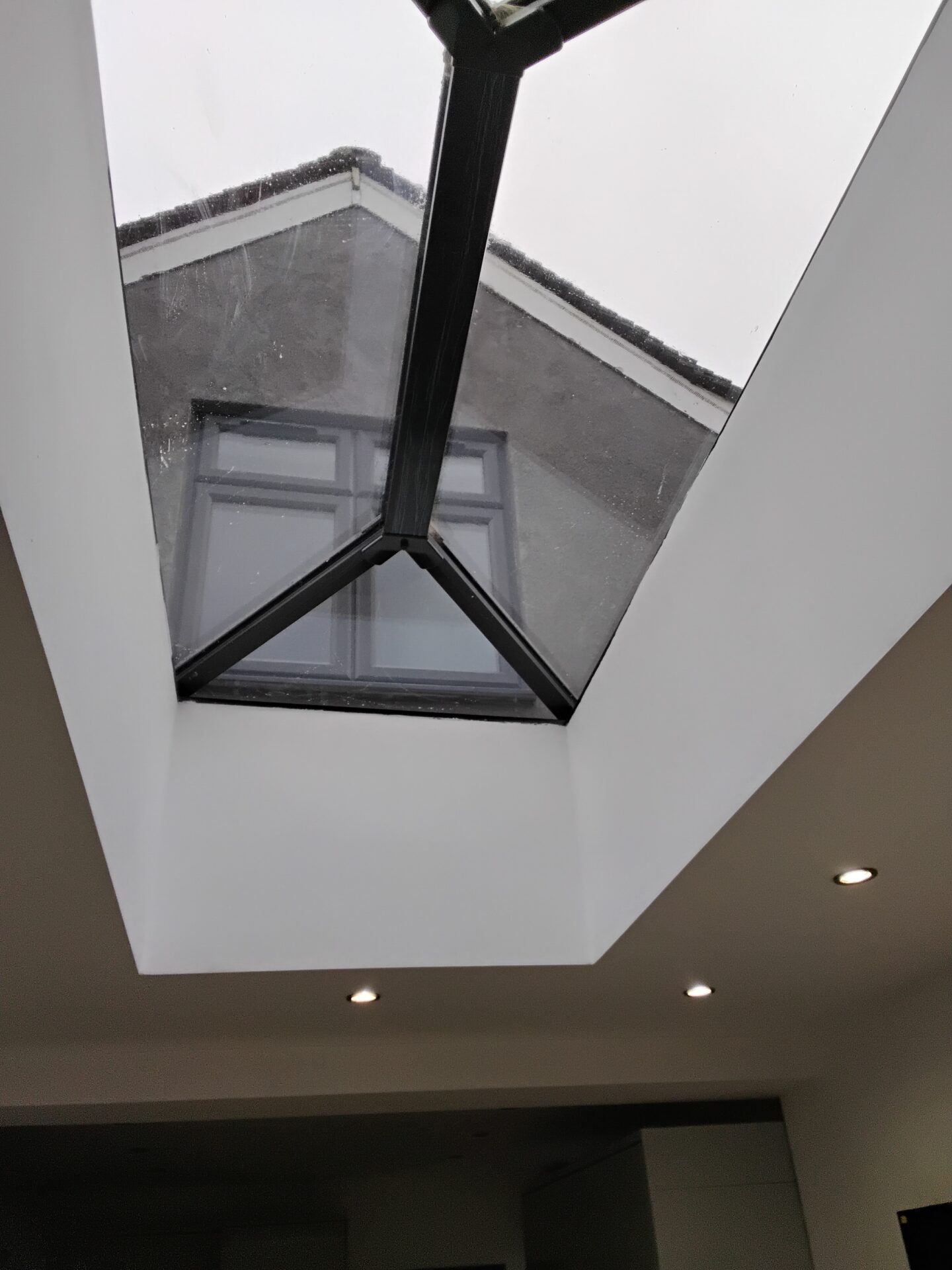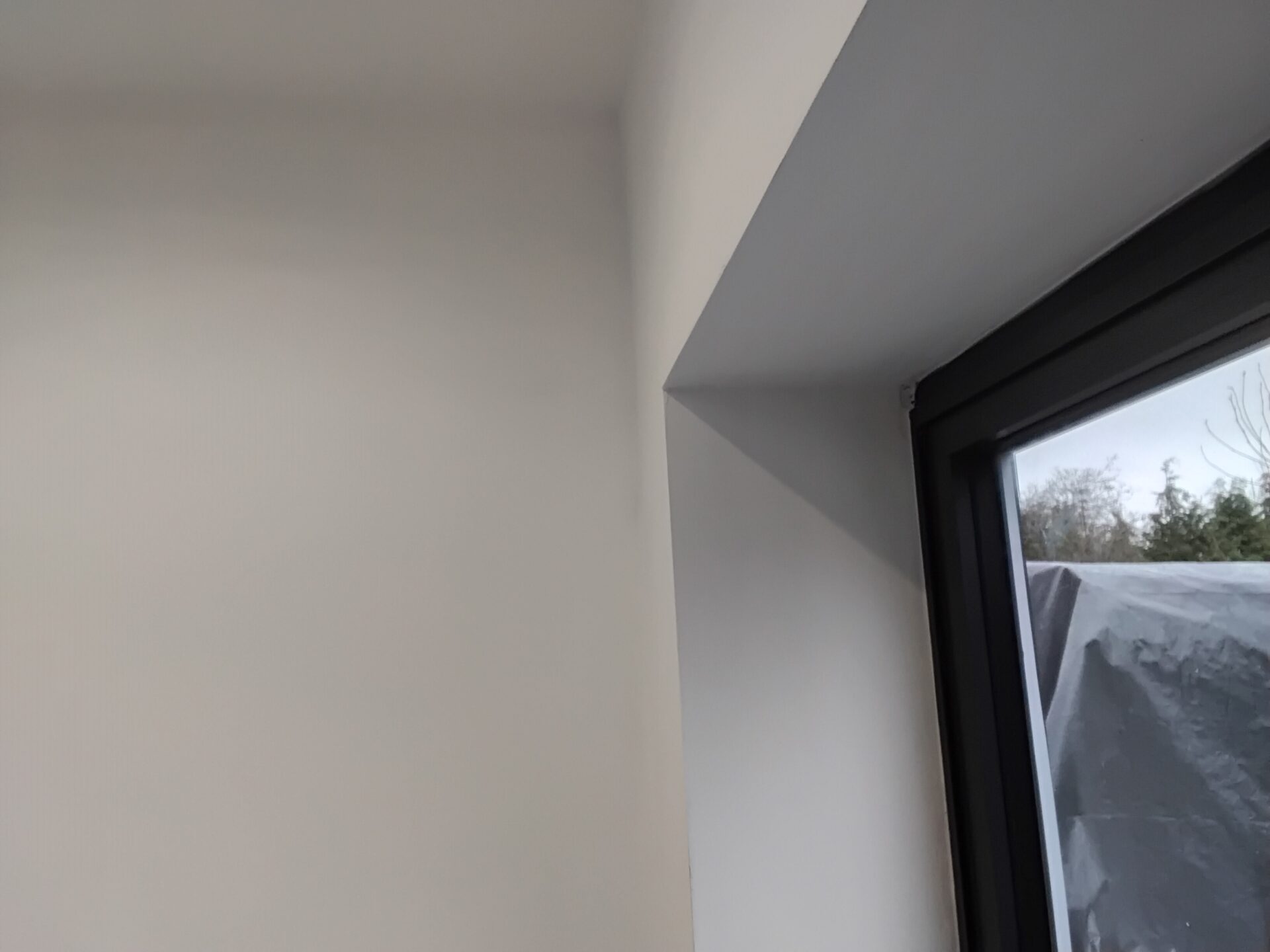 Upstand to roof light has been left unfinished, no trim or plster stop fitted