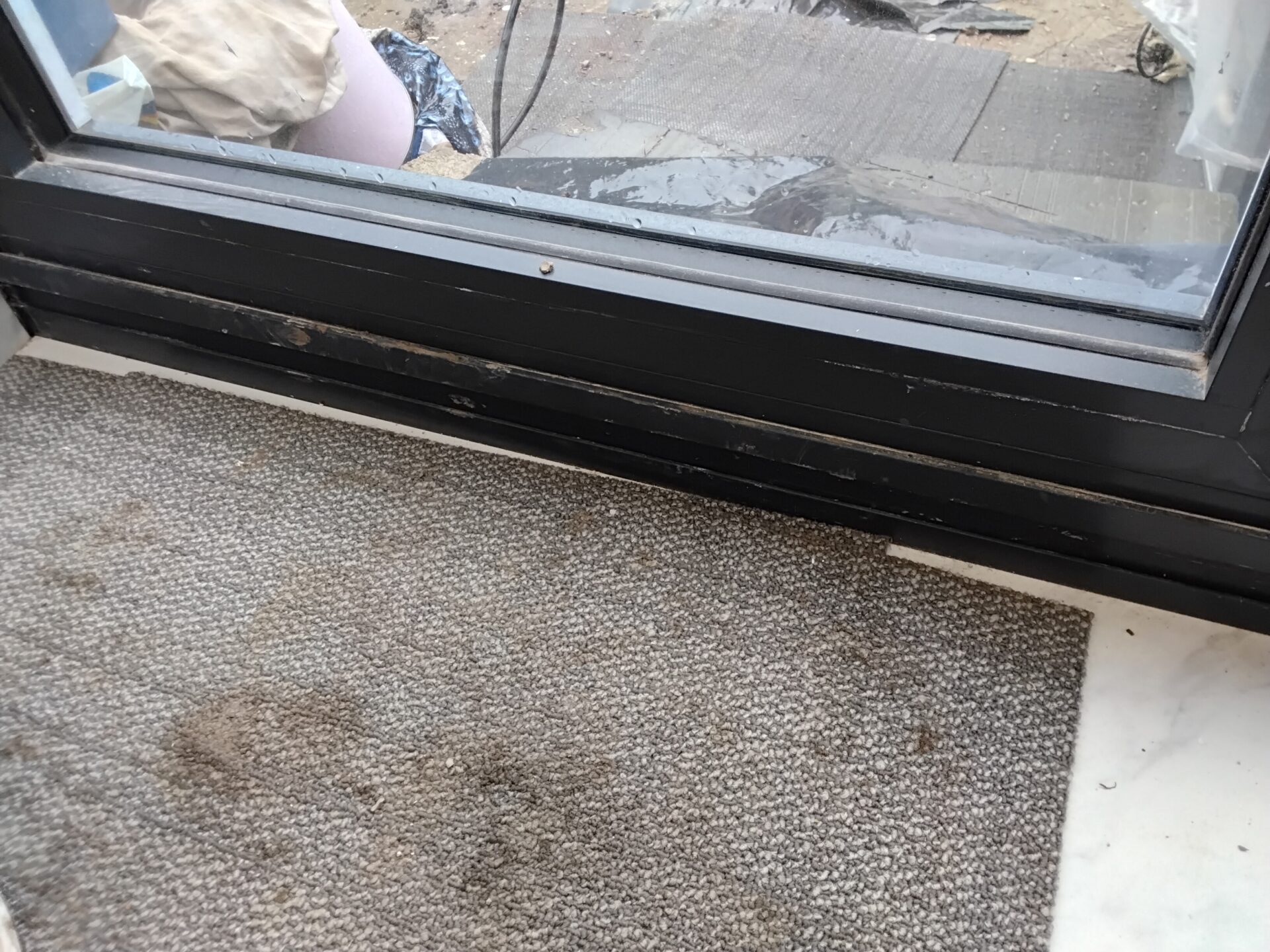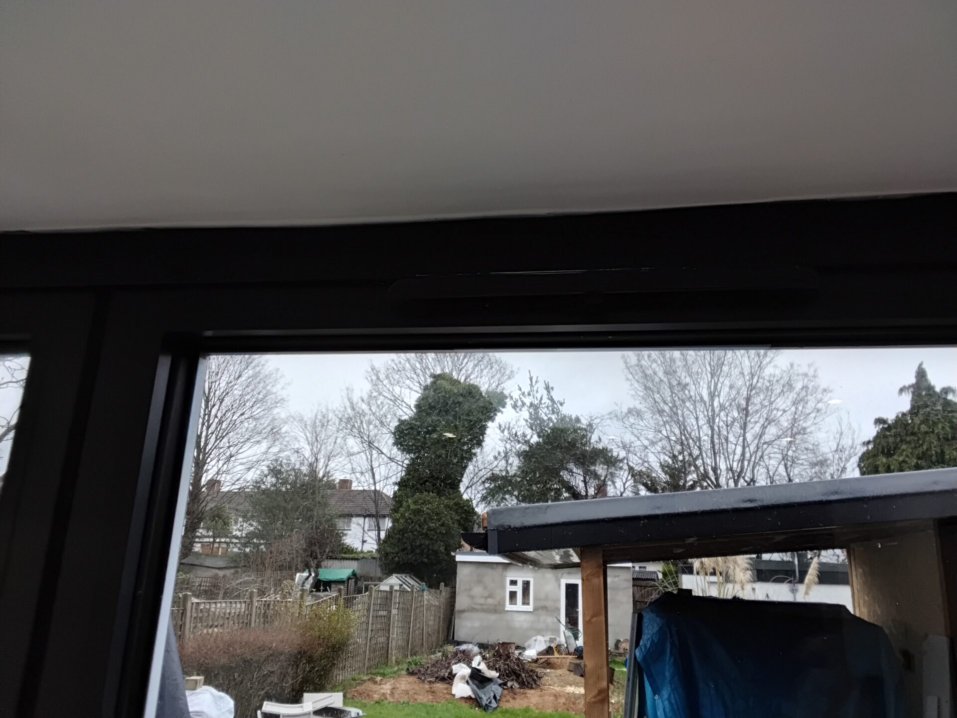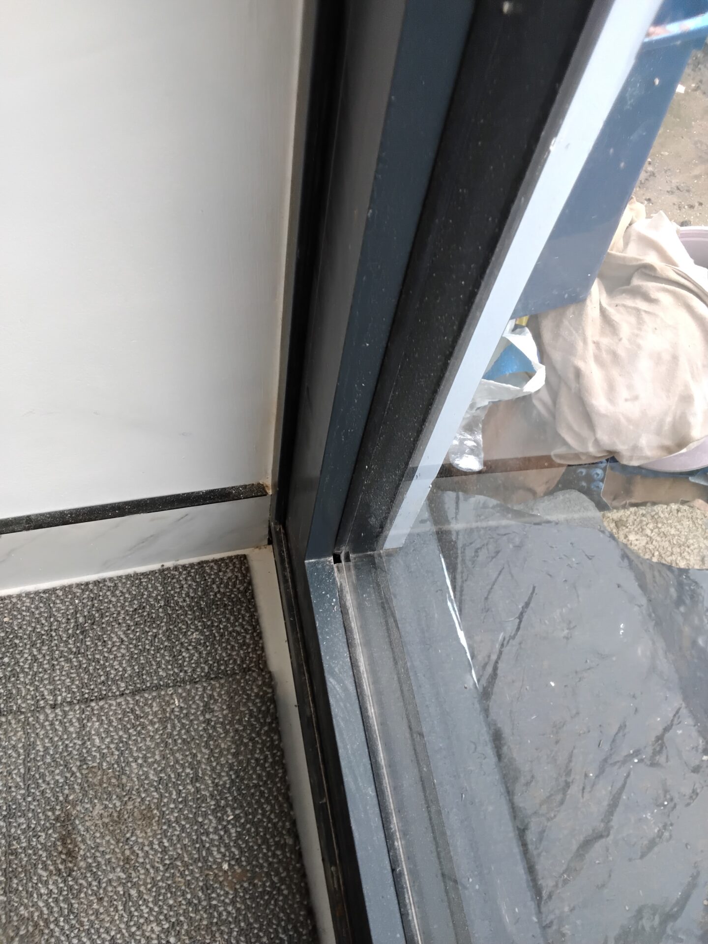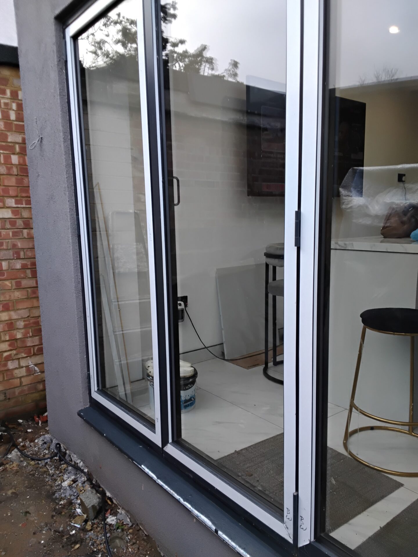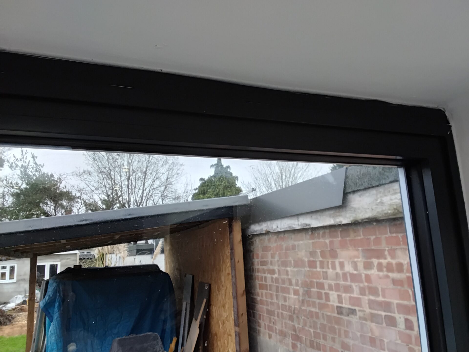 Paint and silicon on the head of the bi-fold doors