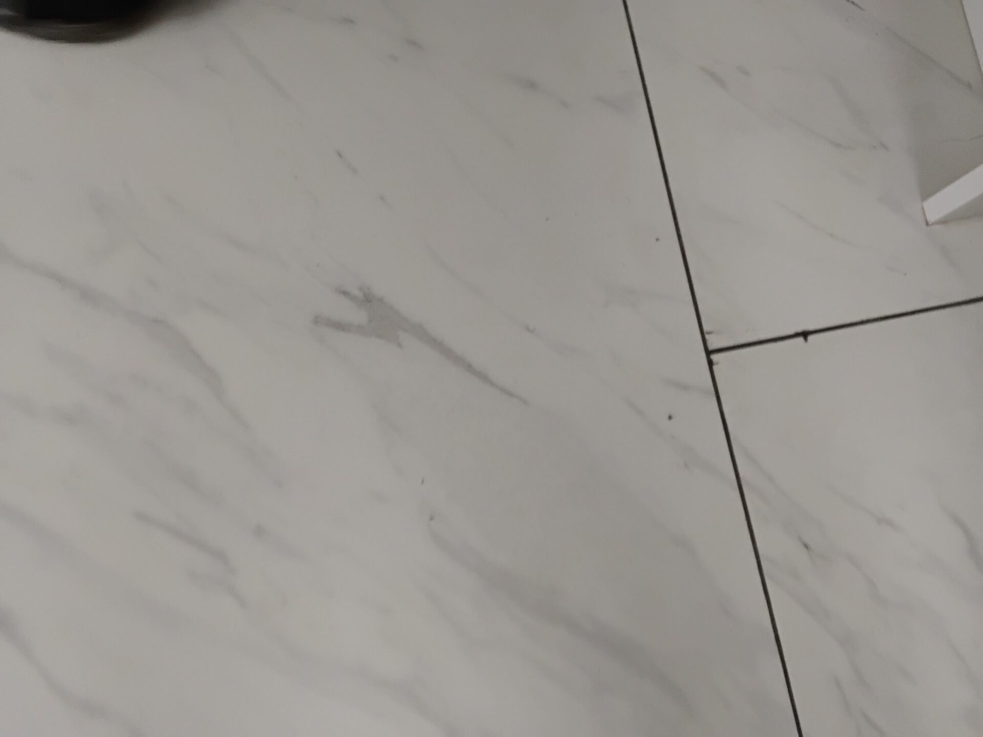 Remians of grout left on the floor tiles