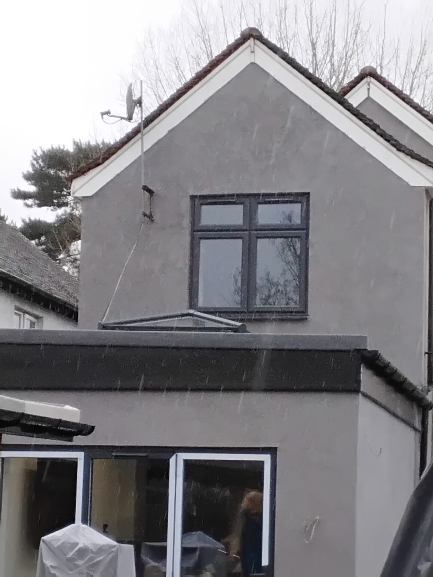 Render stains on the guttering and fascia