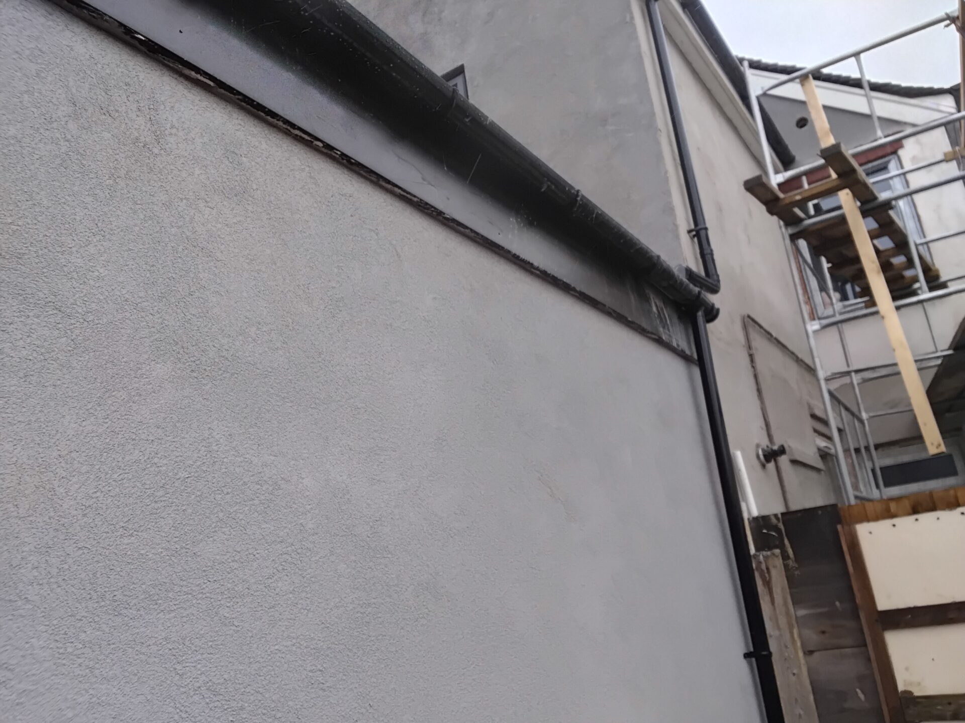 Damage to k-render behind the downpipe