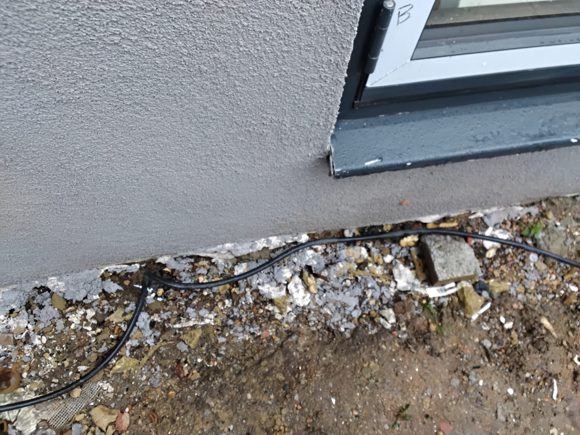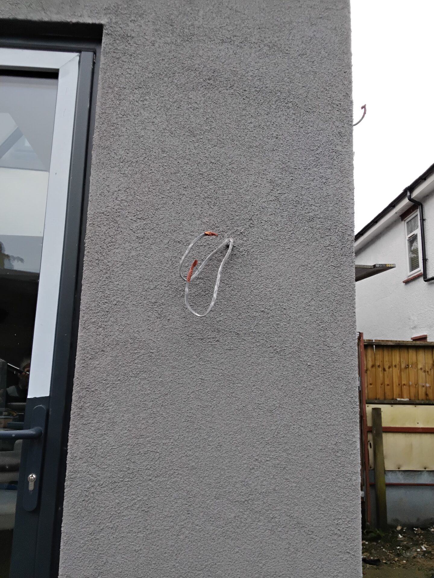 Patchy finish to the k-render on the first floor