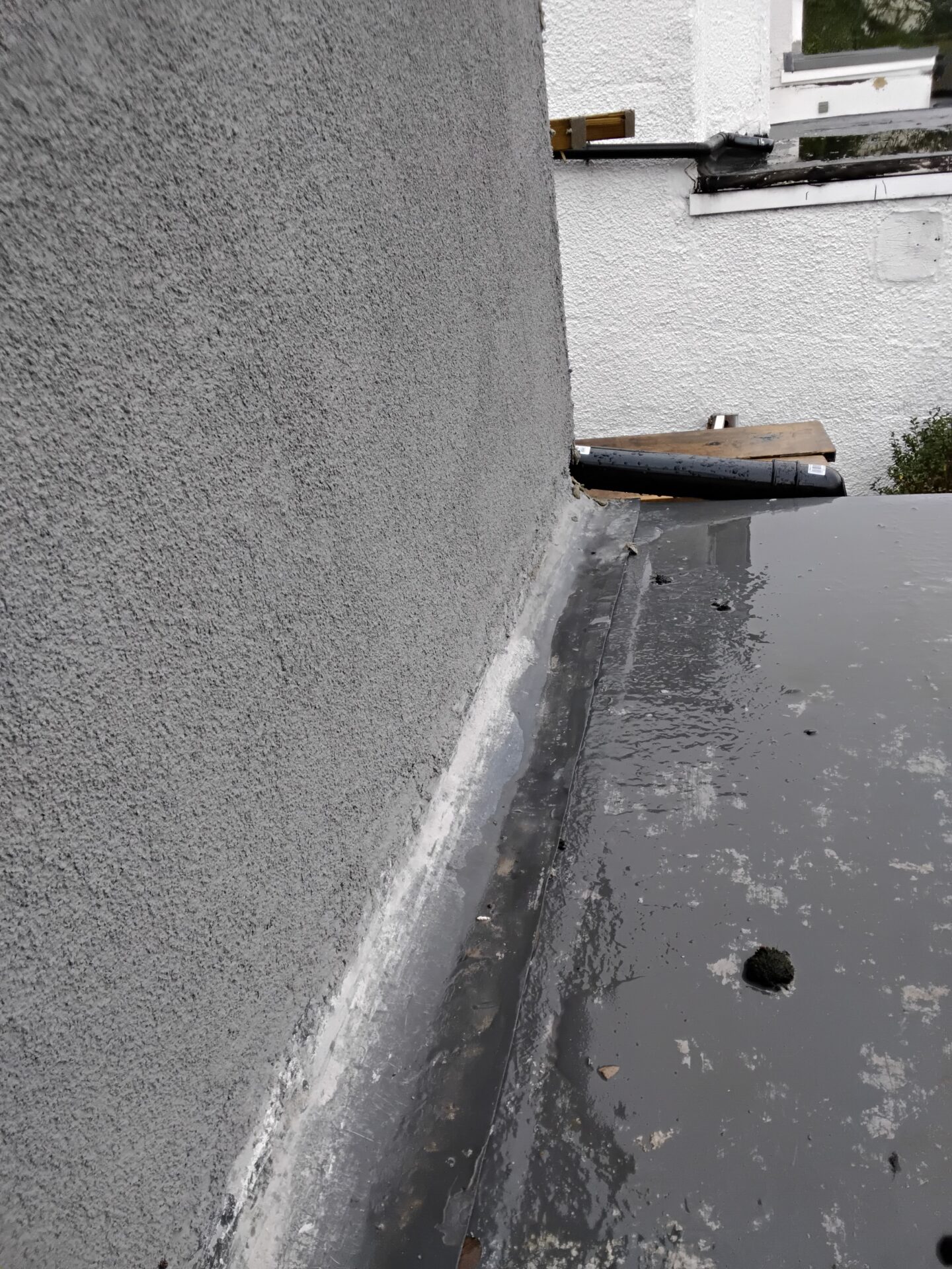 Flat roof flashing too low, should be at least 100mm
