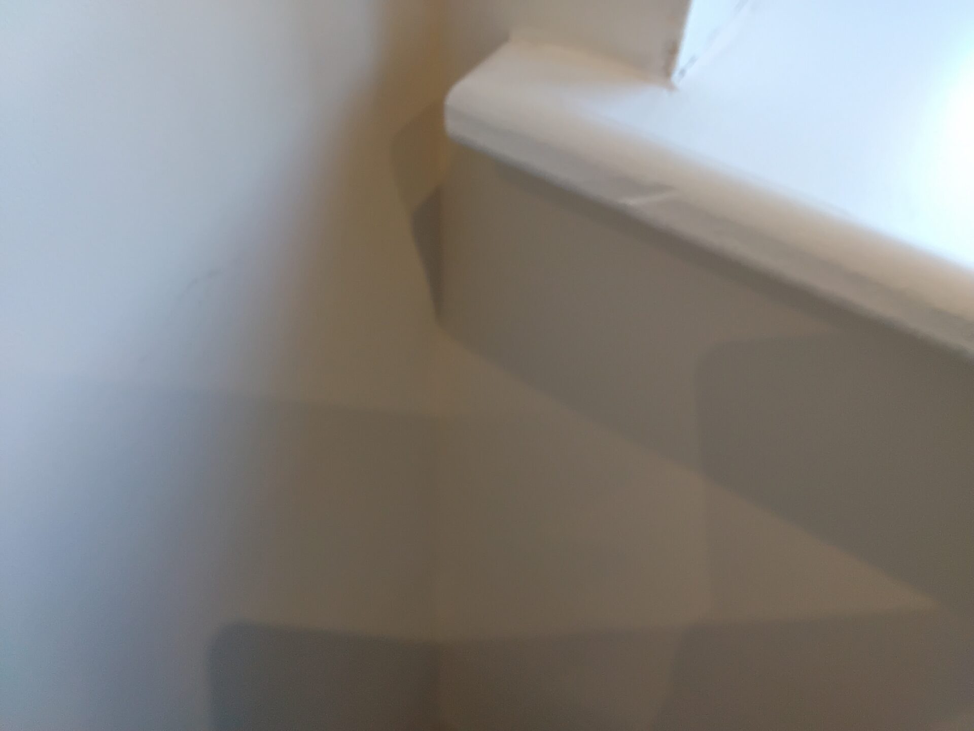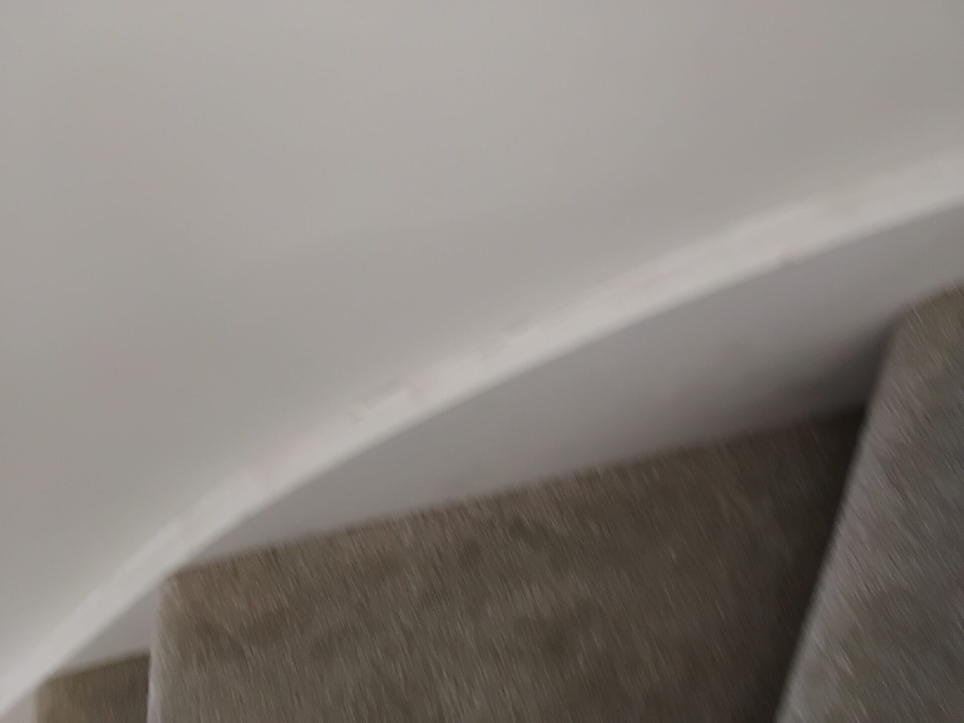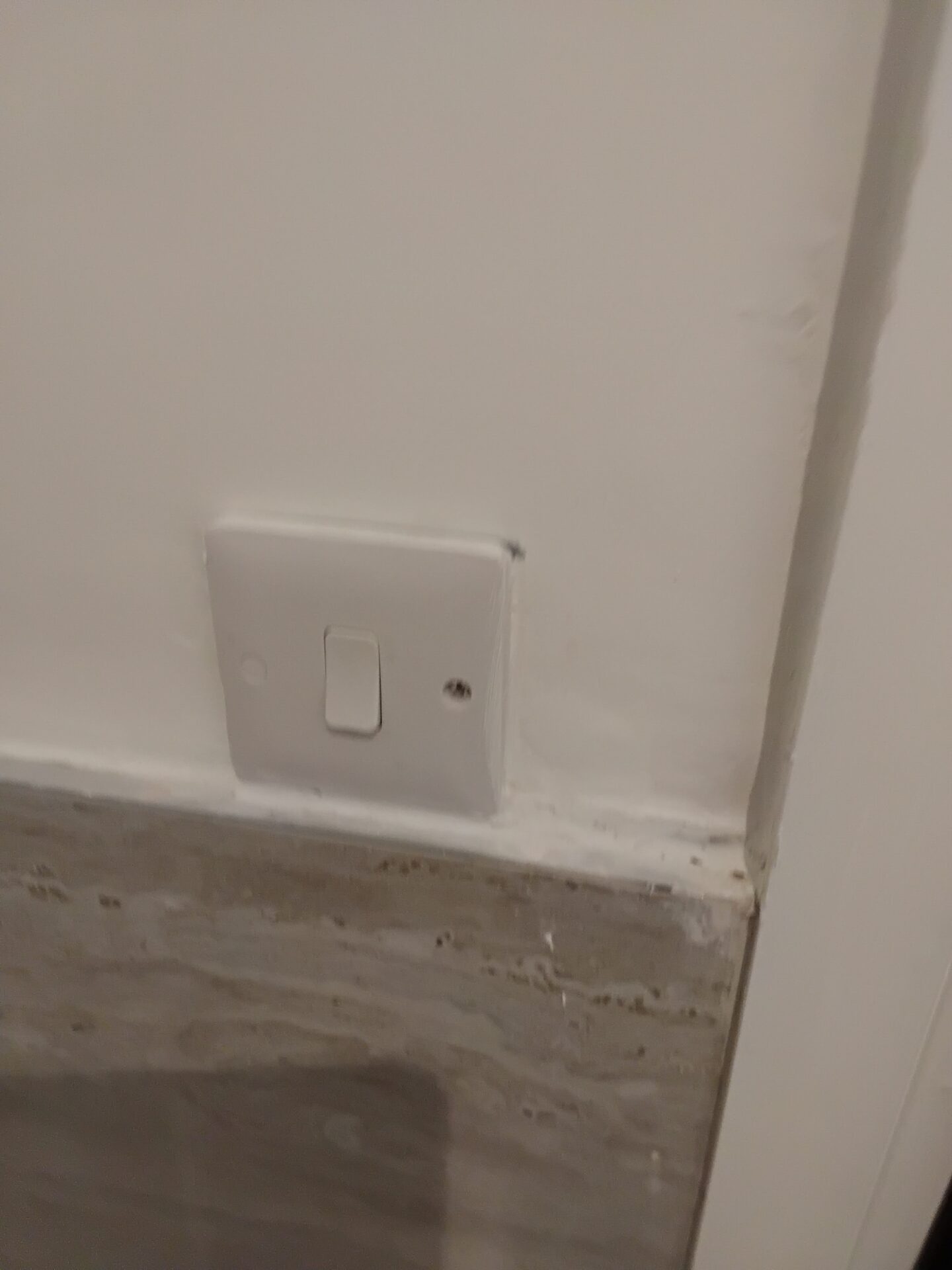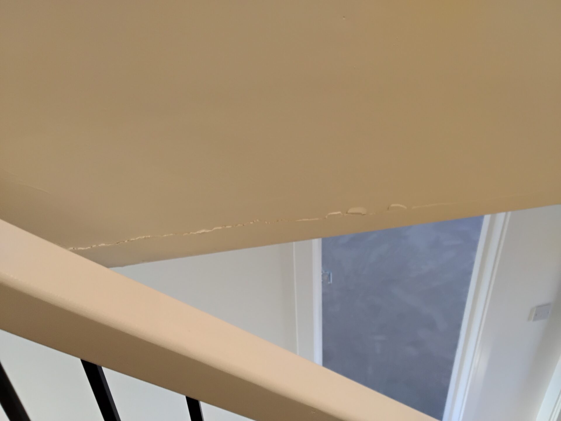 Wall to the right of the stairs, poor finish uneven plaster finish
