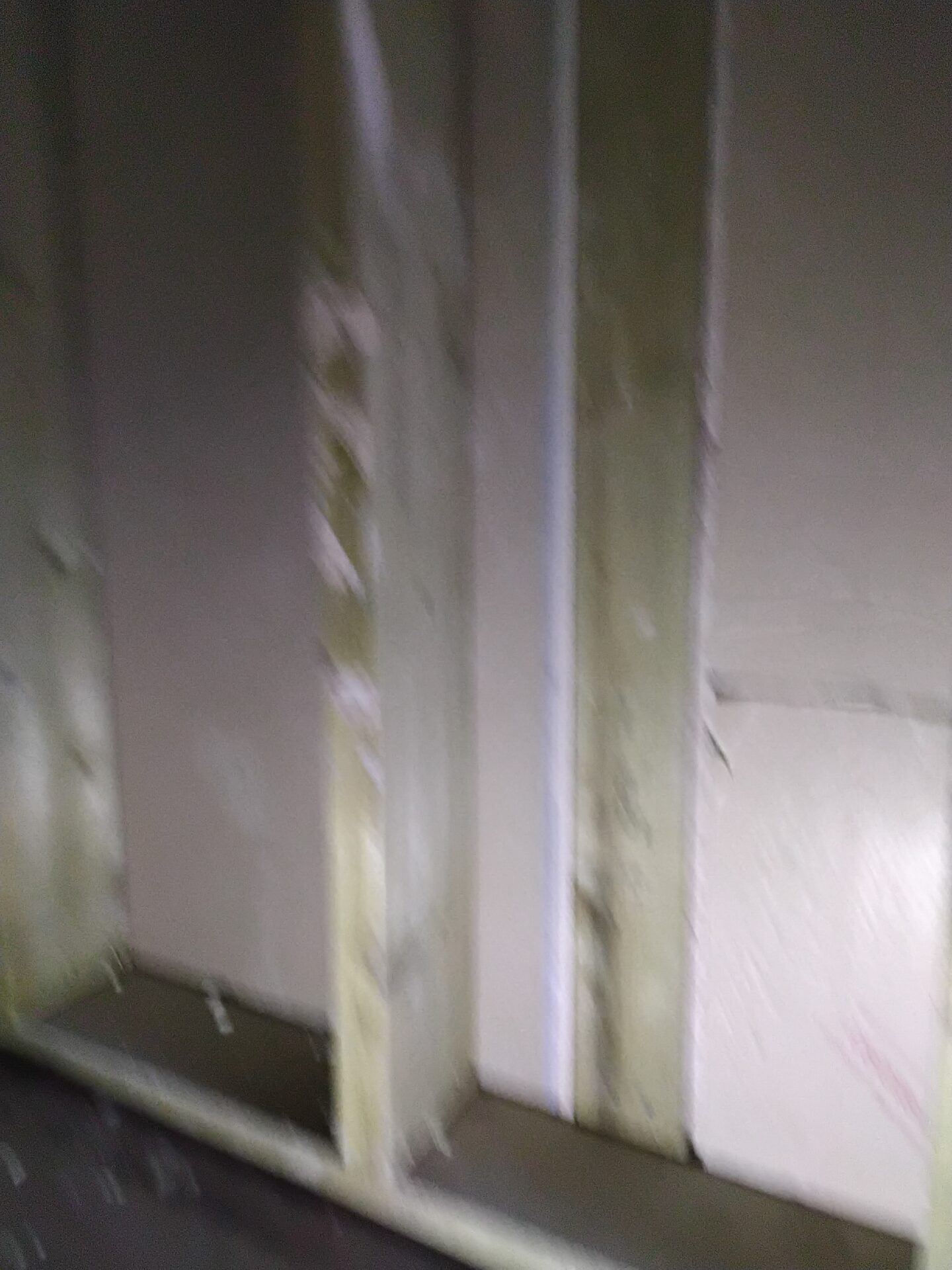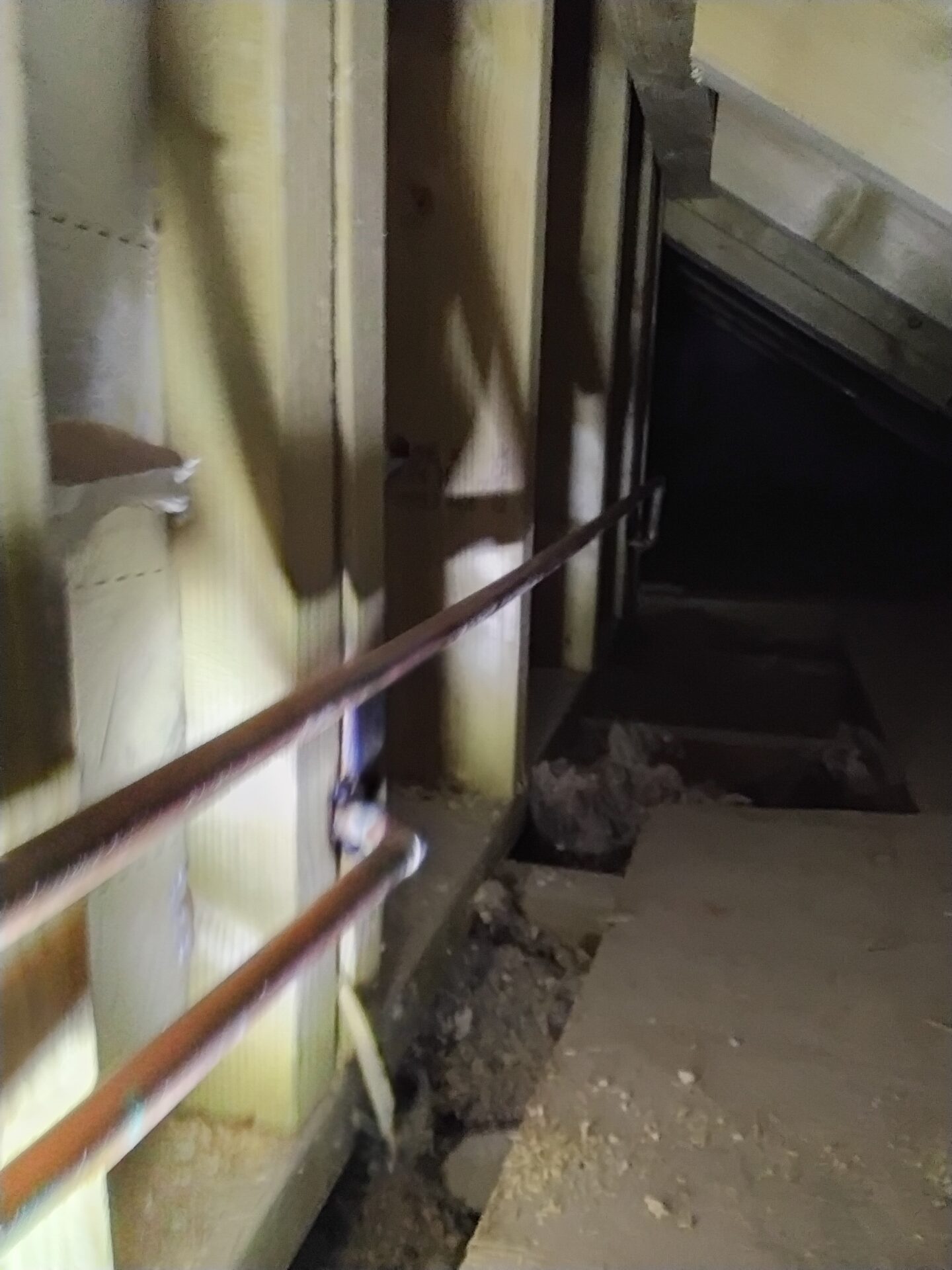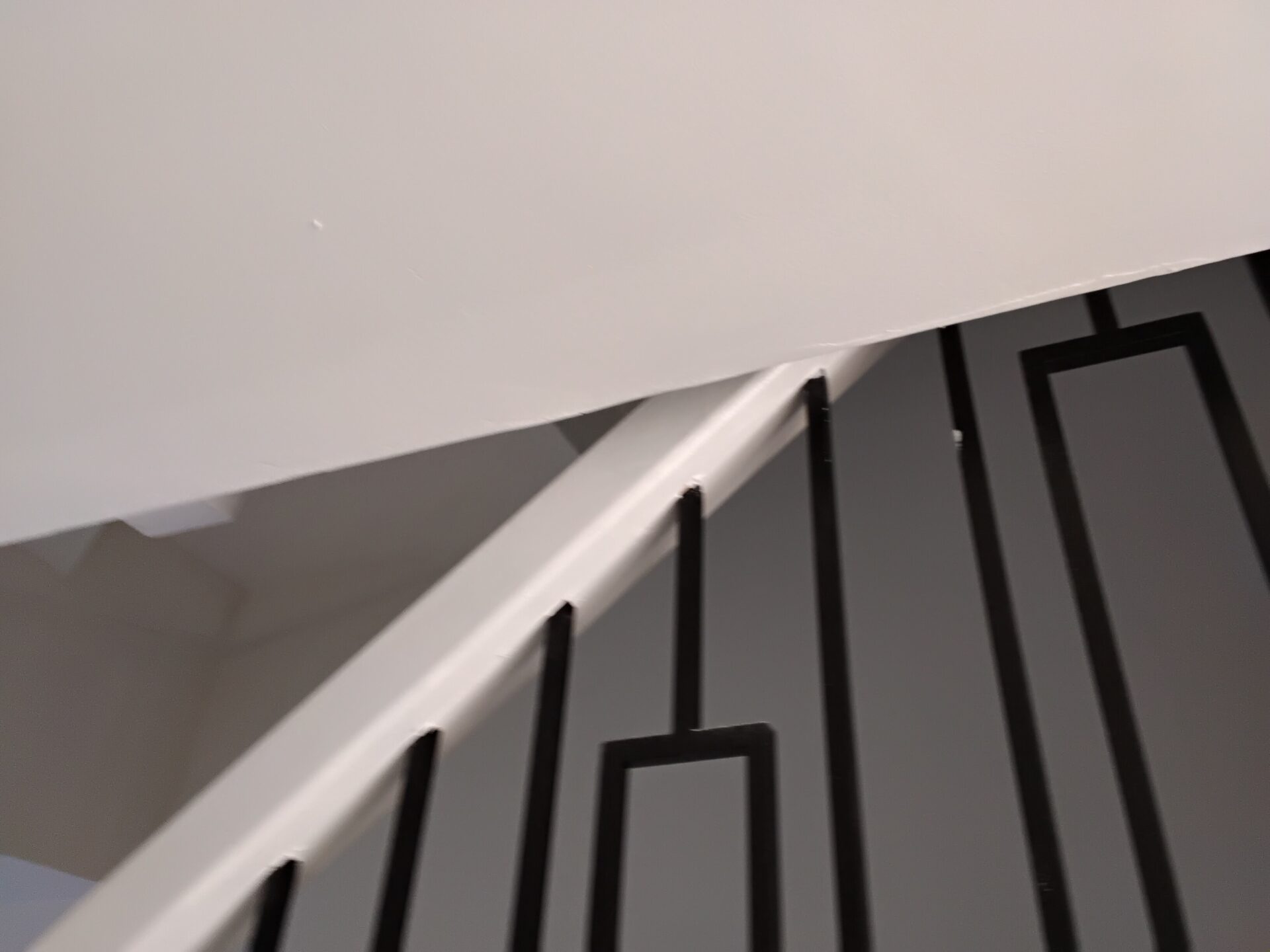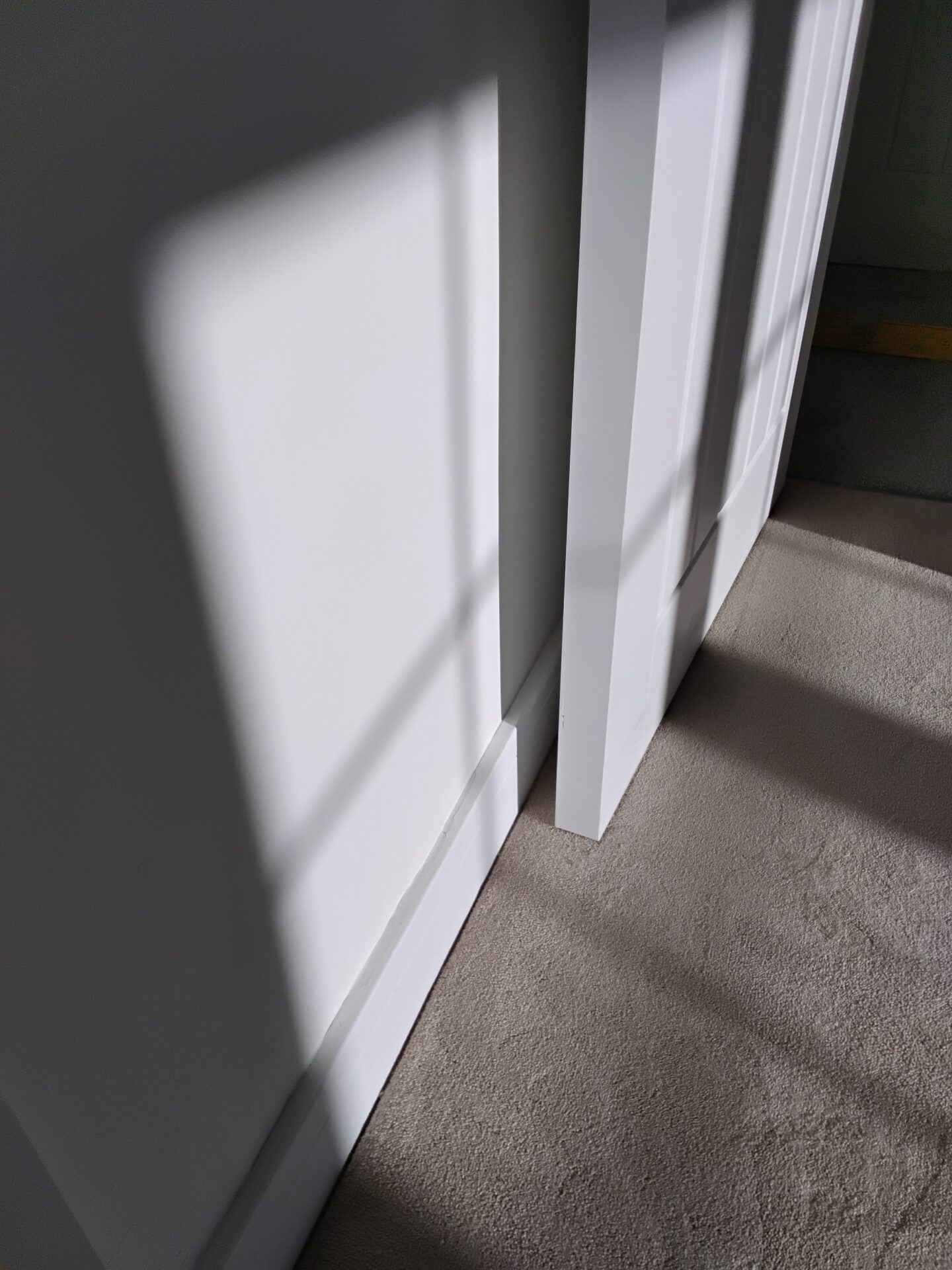 Wall to the right of the stairs, poor finish uneven plaster finish