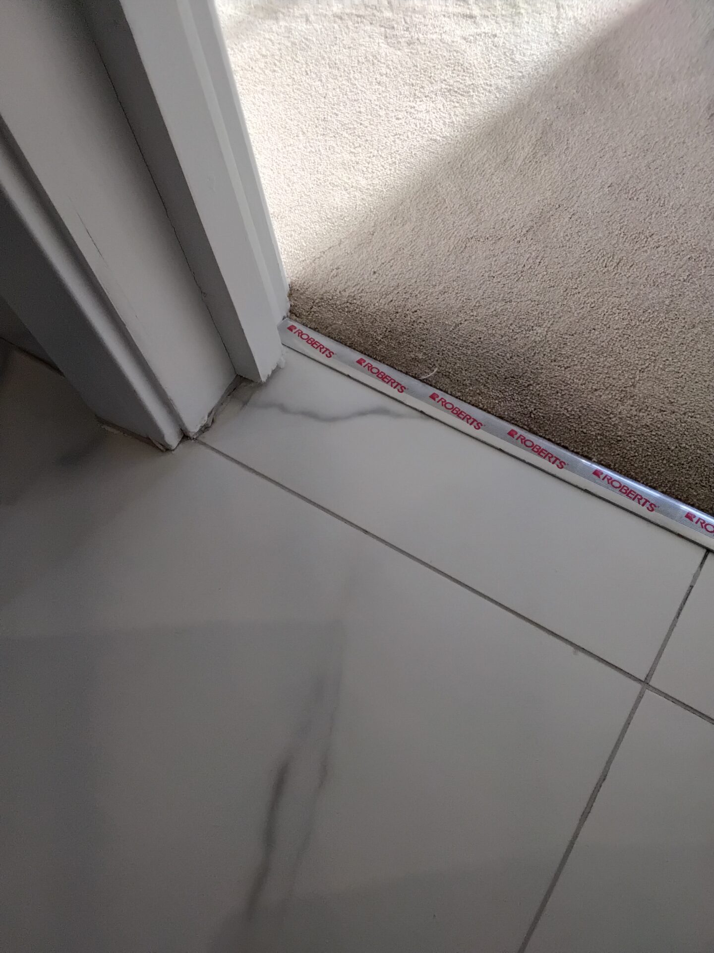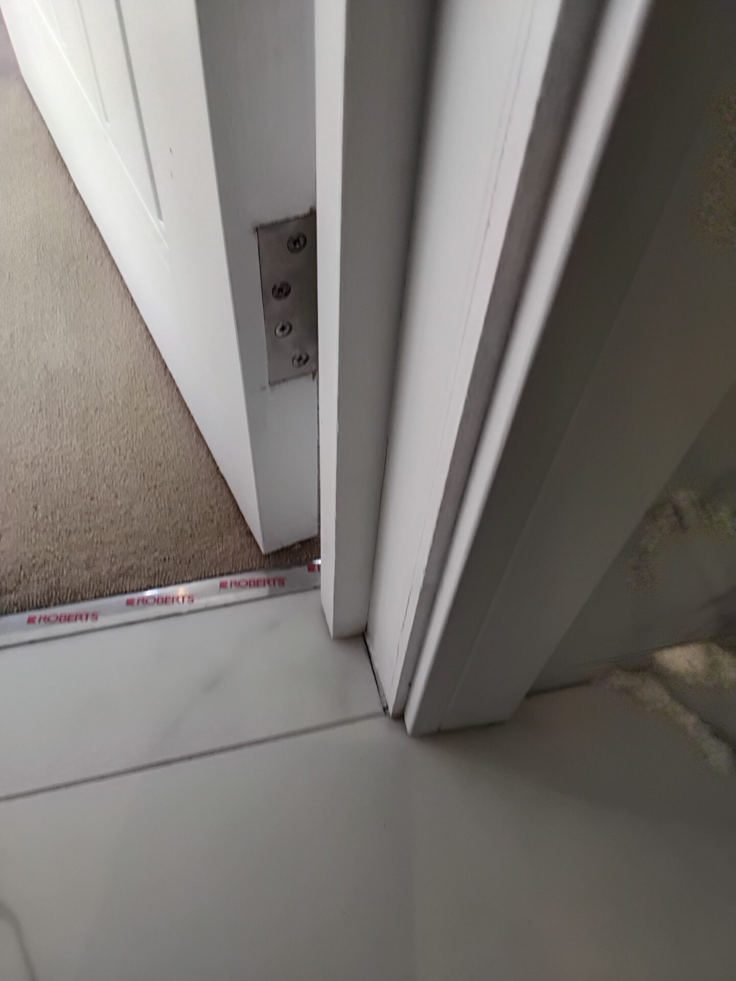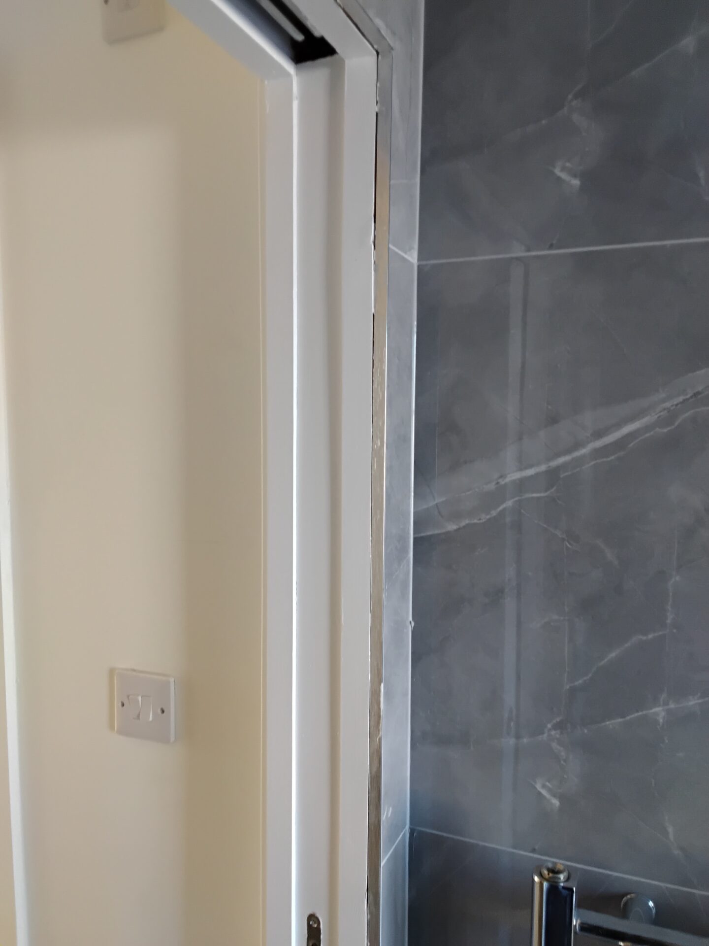 Door lining too narrow, additional strips of timber have added to allow for tiles.