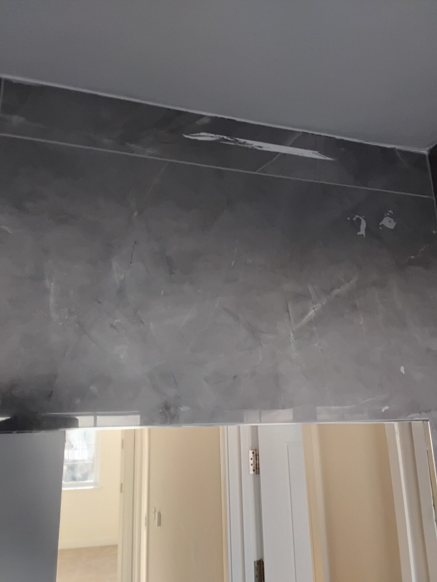 Paint on wall tiles, poor finish between tiles and ceiling
