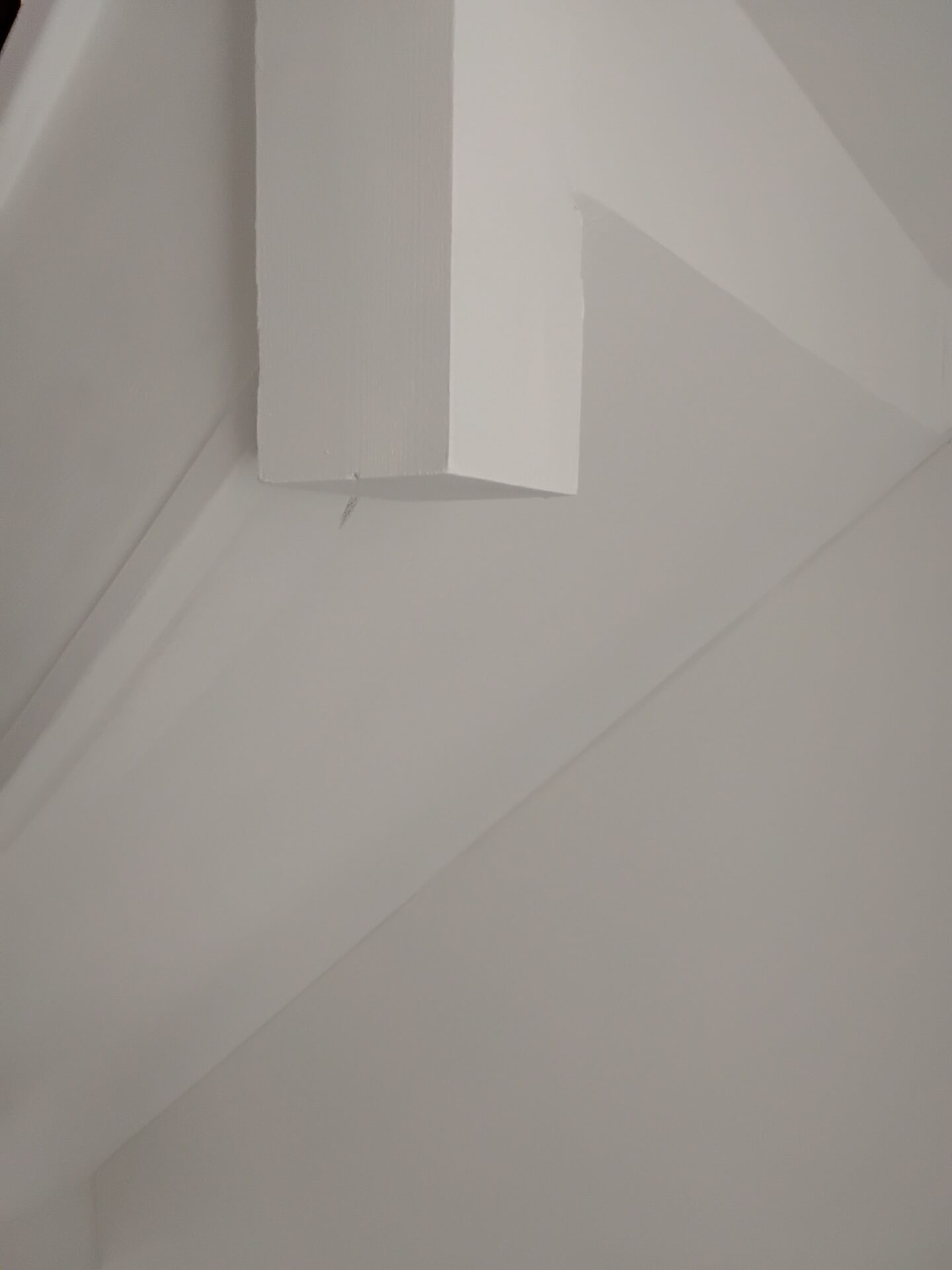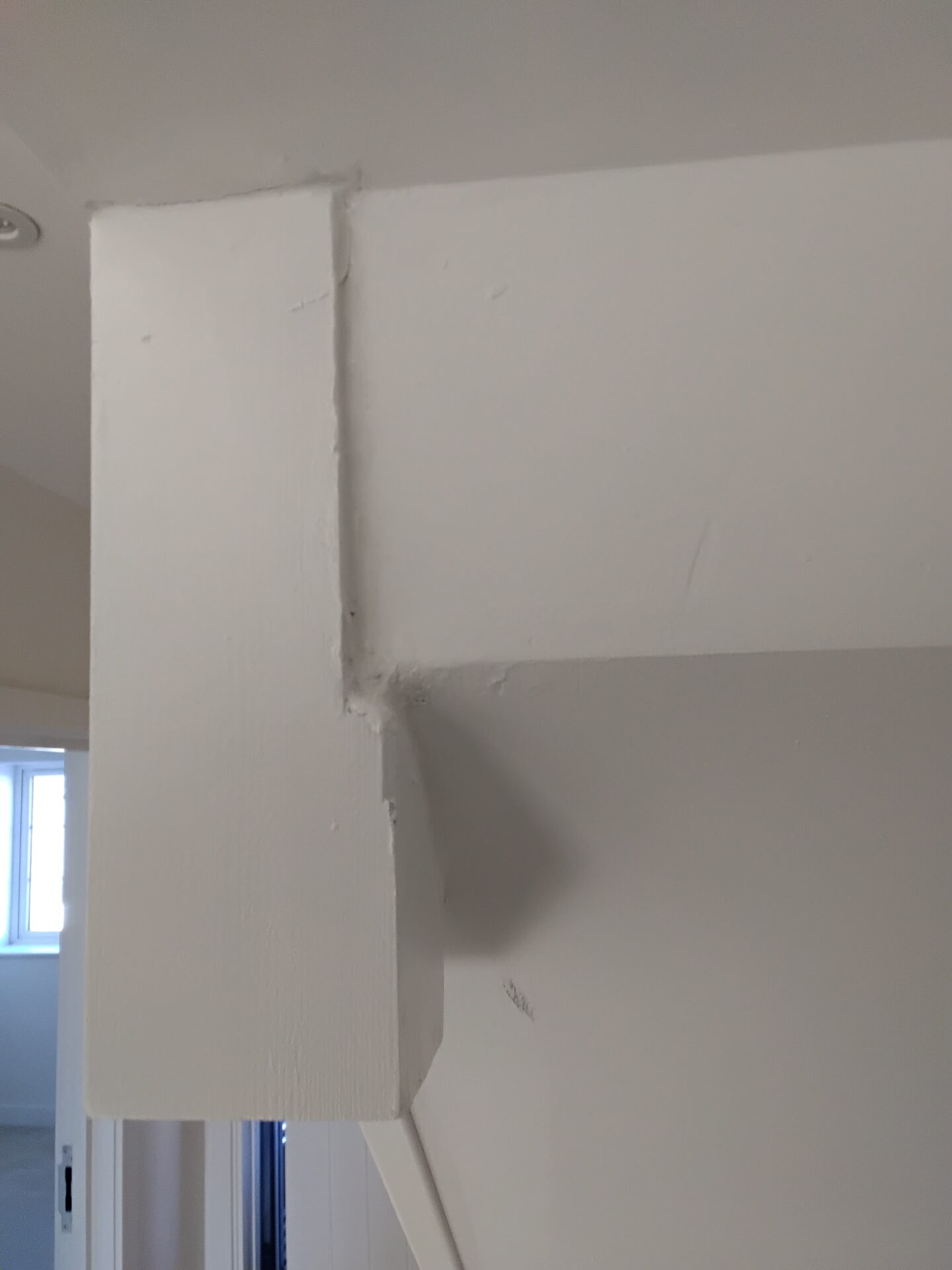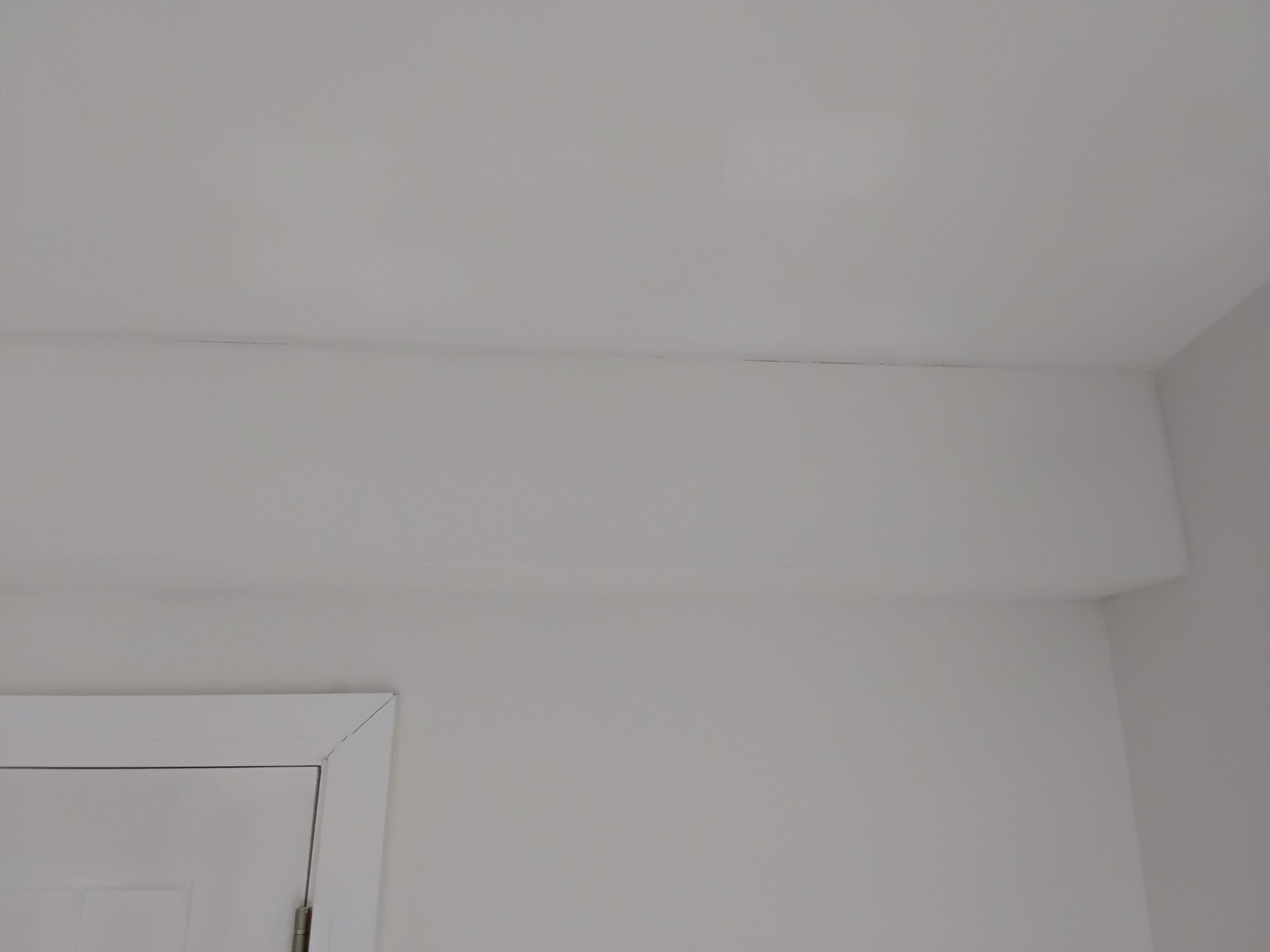 Bad joint between ceiling and wall, plasterboard too short