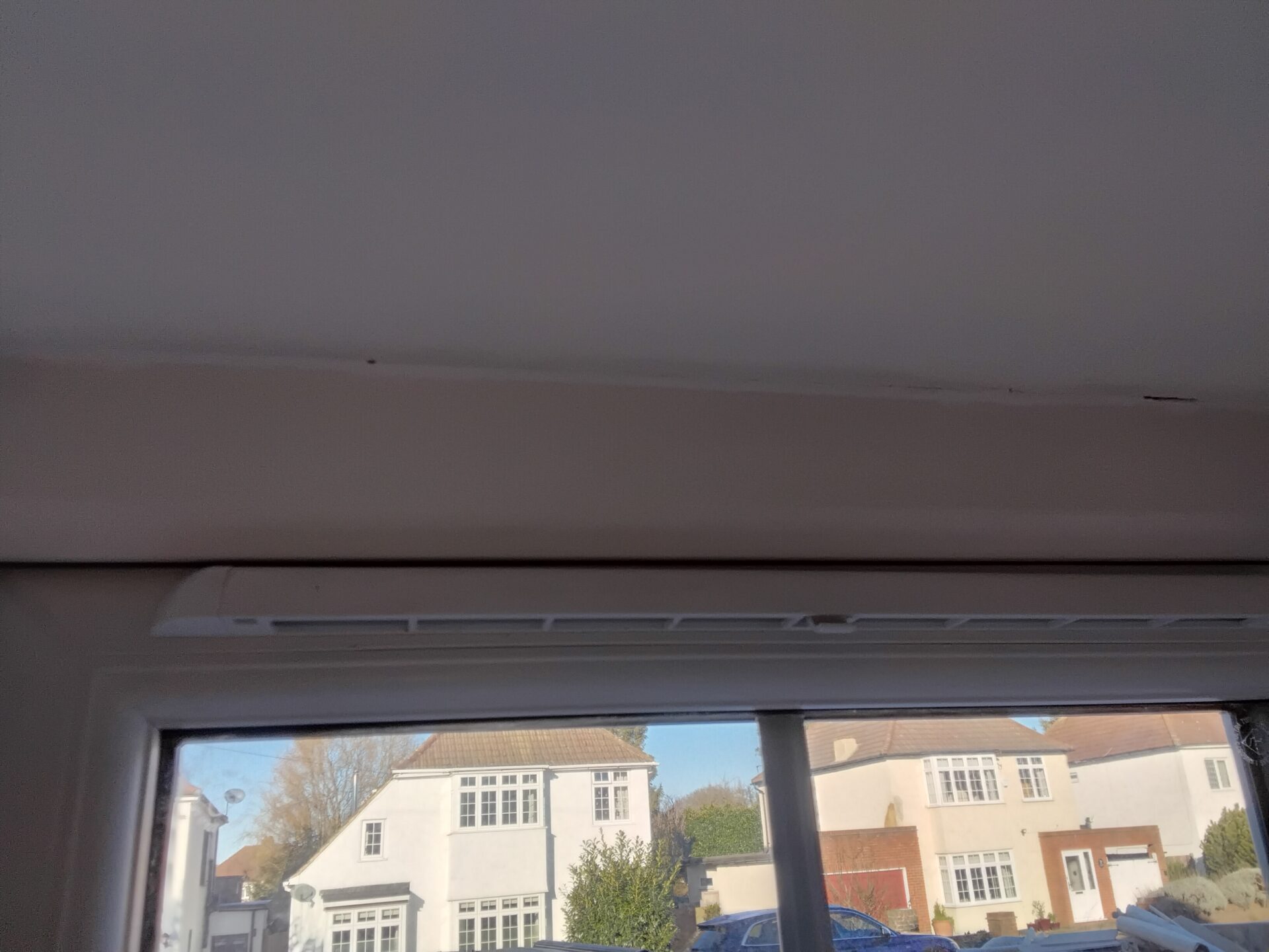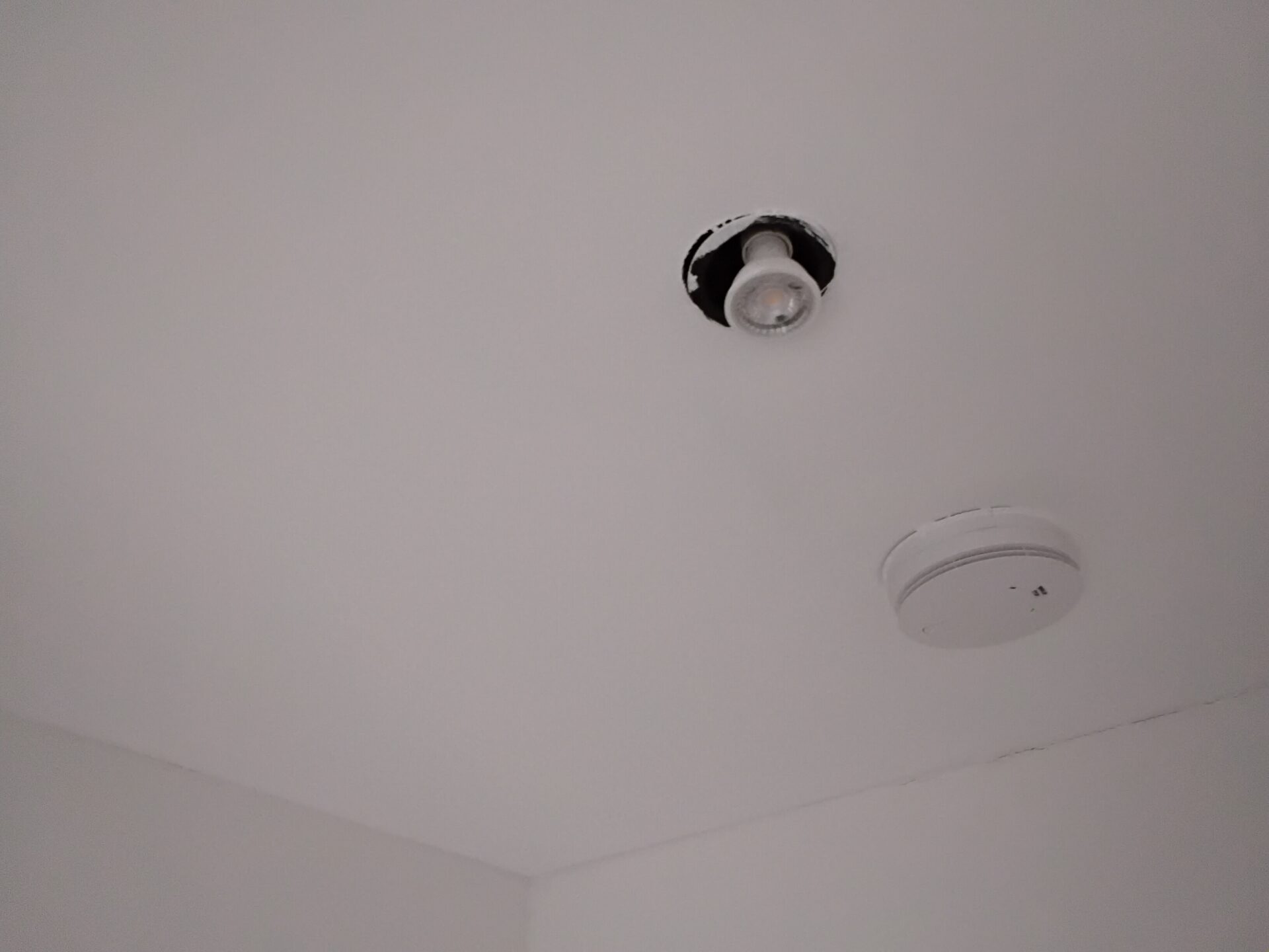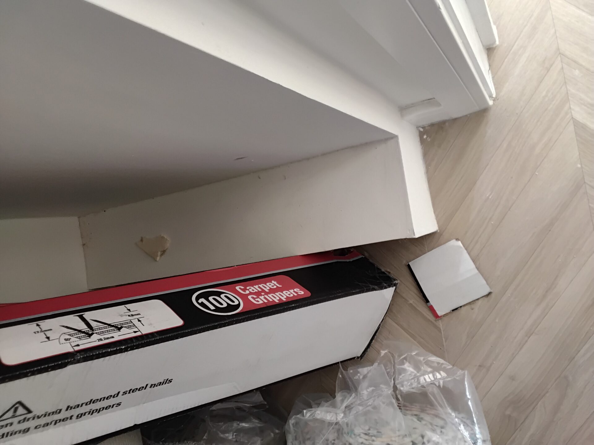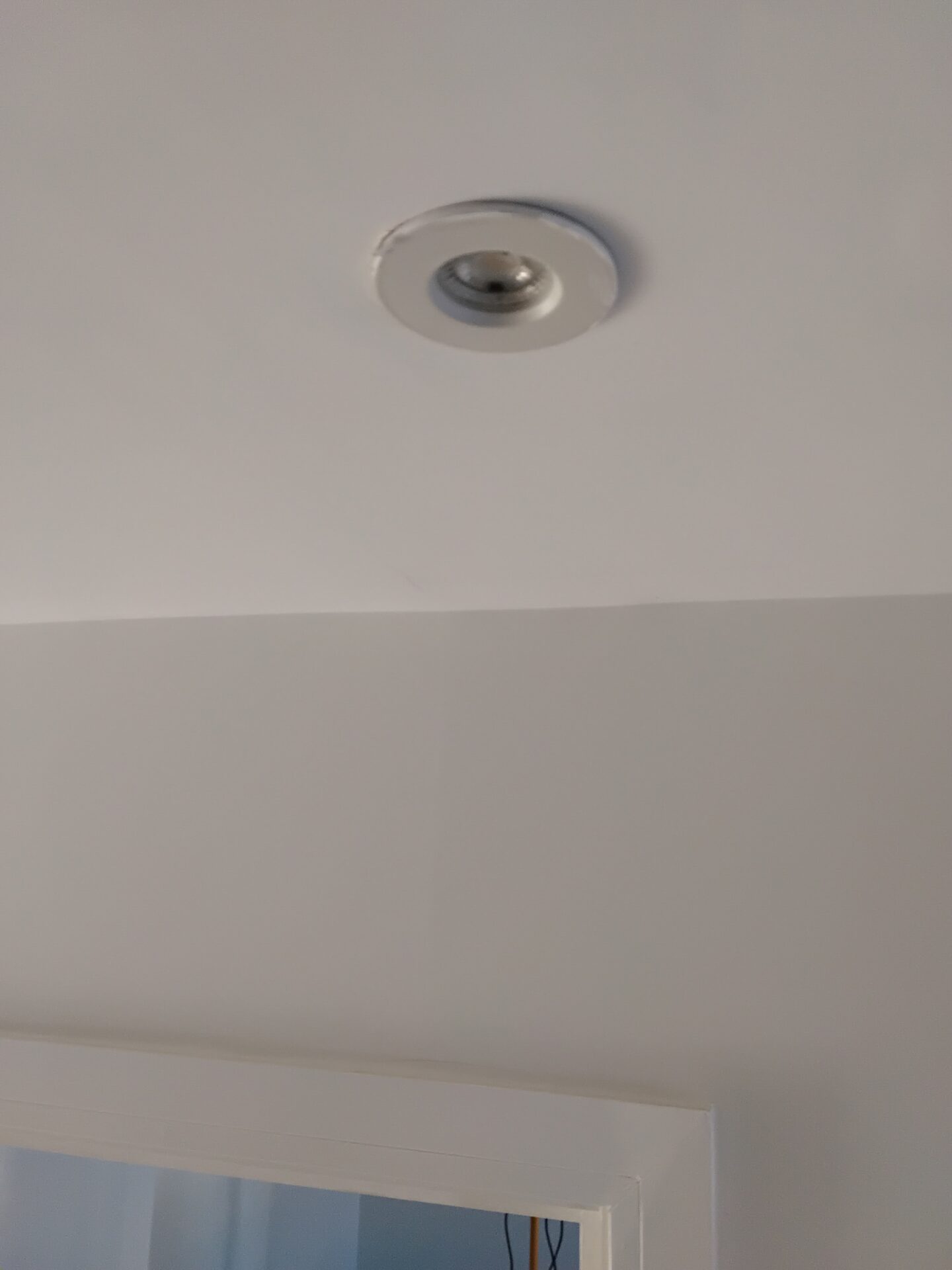 Bad joint between ceiling and wall, plasterboard too short