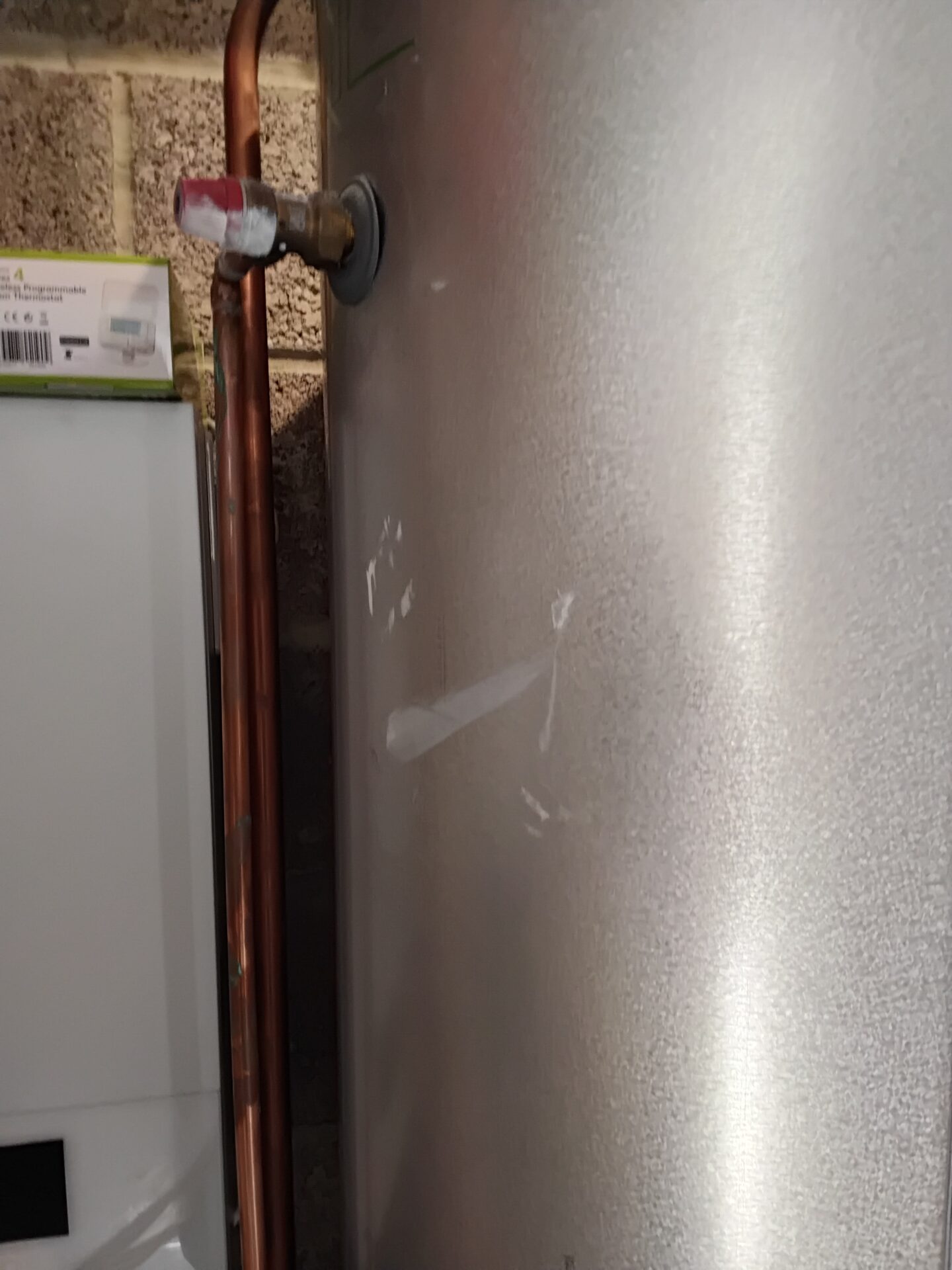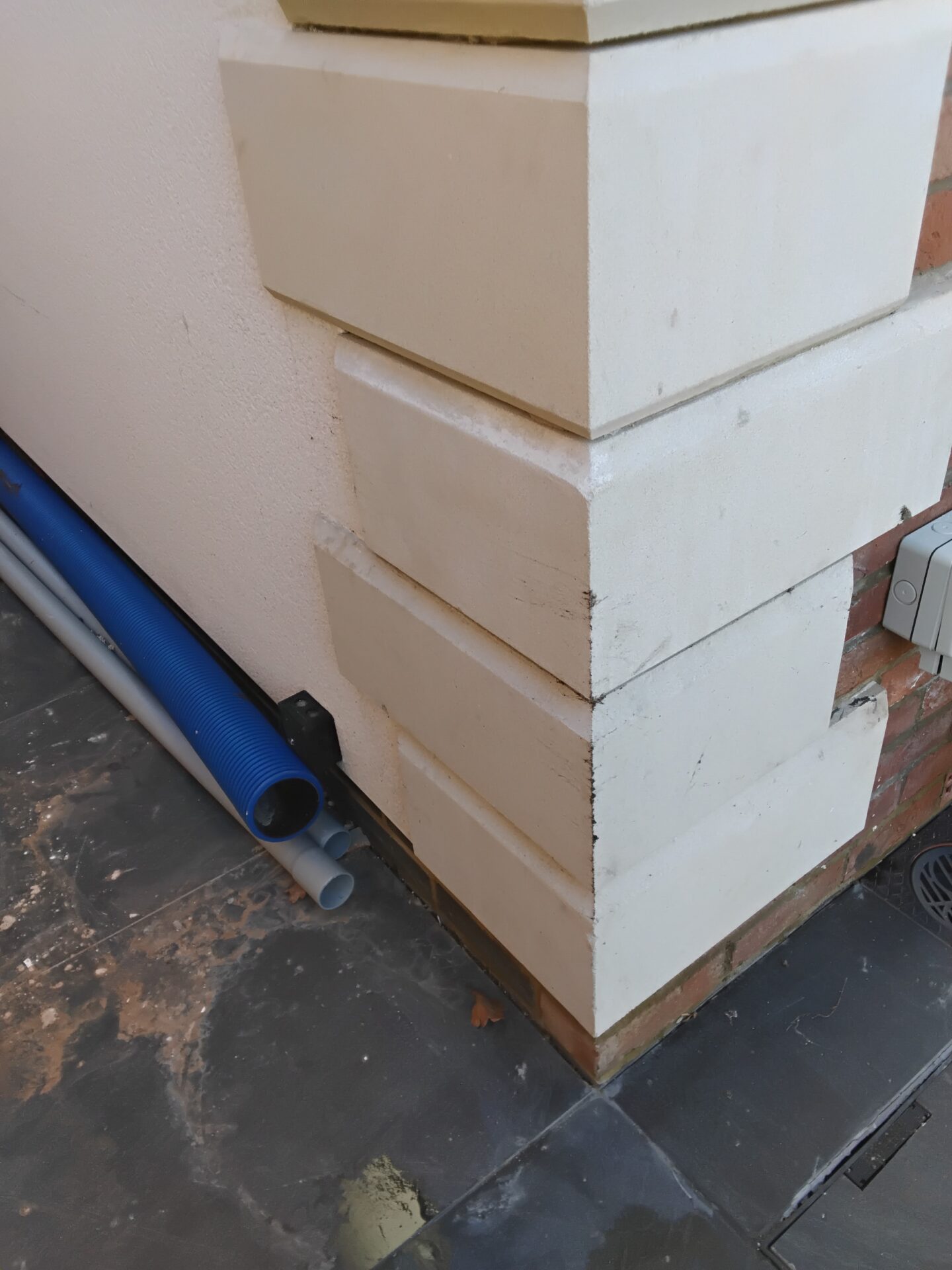 K-render damaged to the side of the gas box.