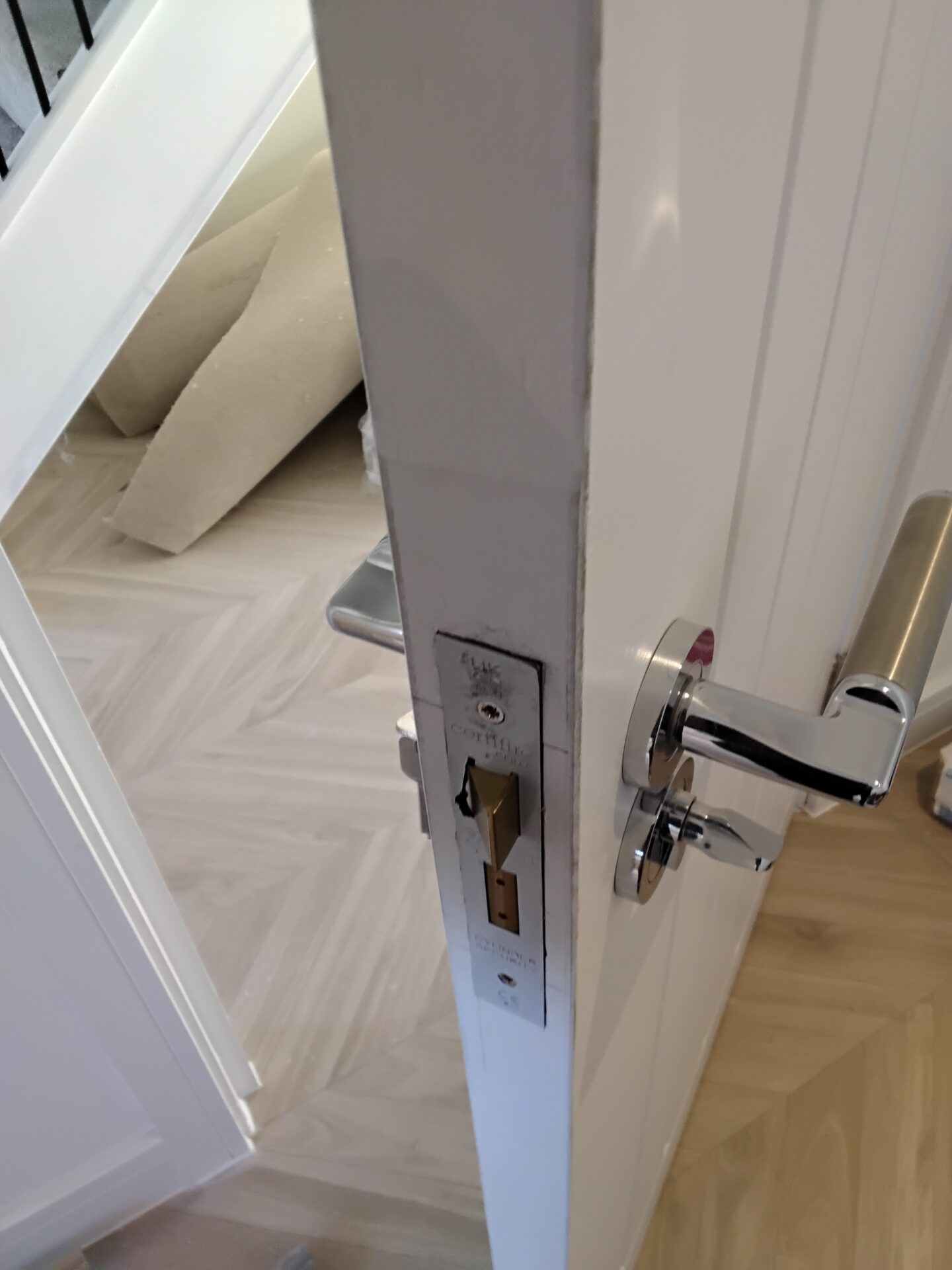 En-suite door, privicy lock not working, paint on handle