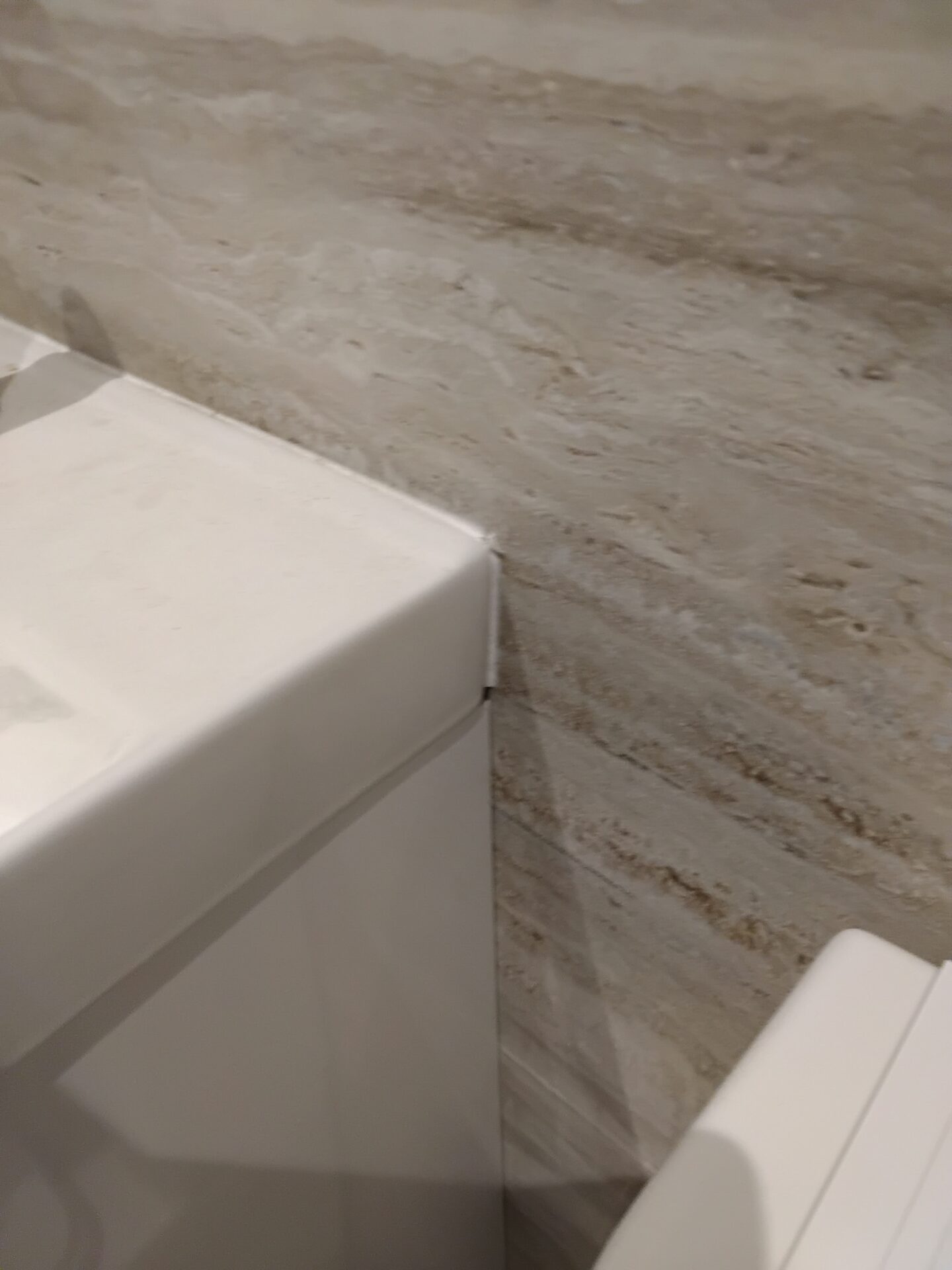 Silicon poorly applied/missing between walls and floor by toilet