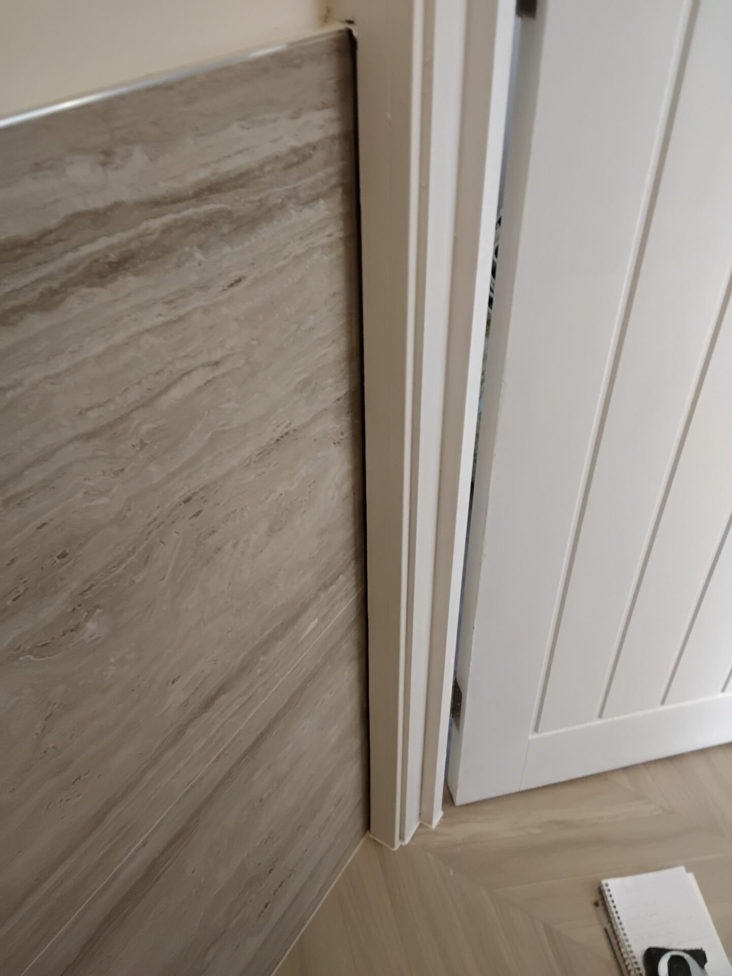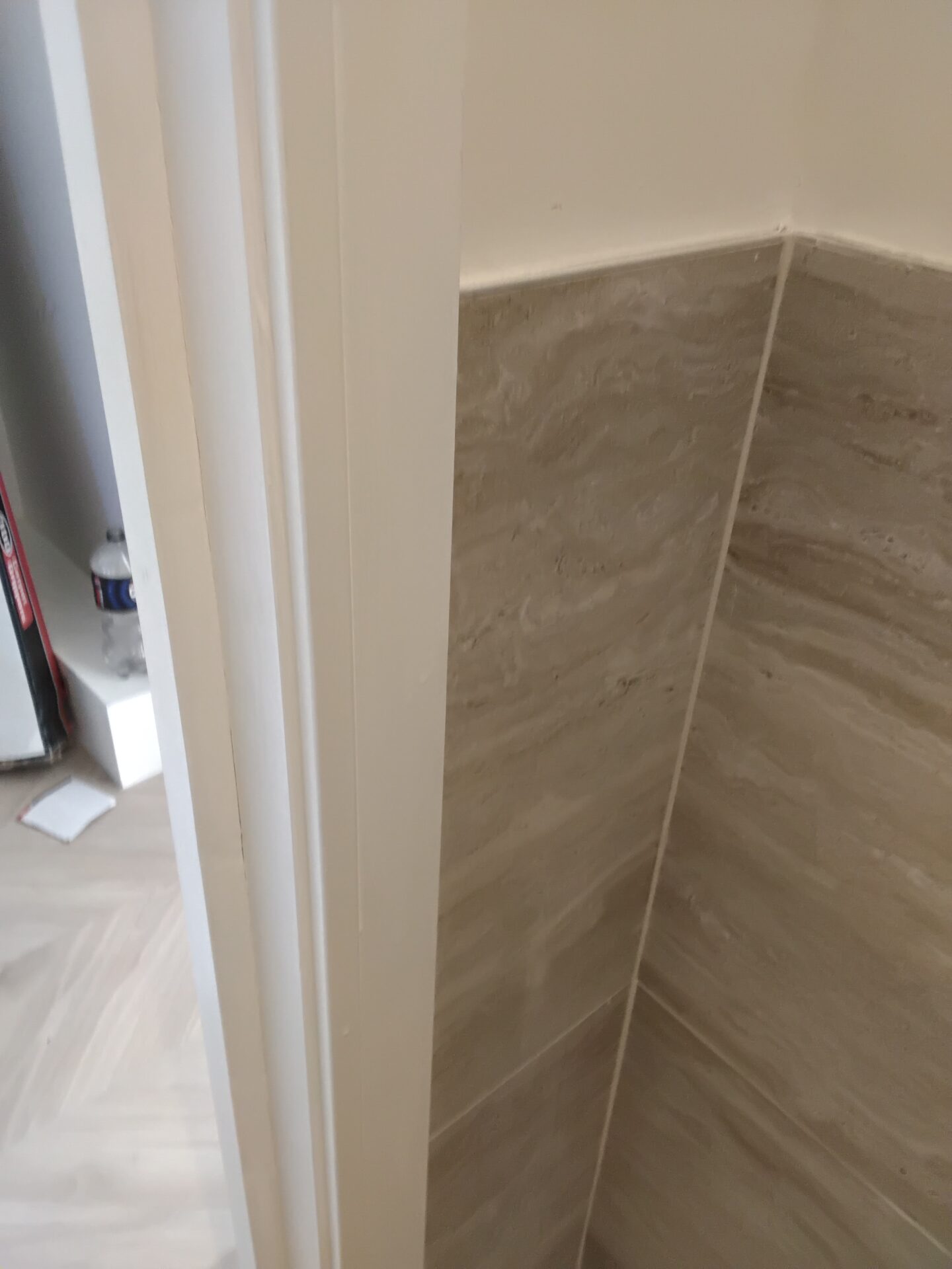 Now leaves a big gap behind the architrave above the tiling