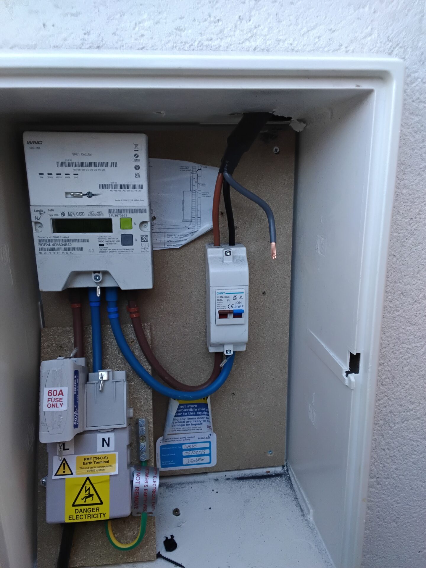 Wiring incomplete in meter box