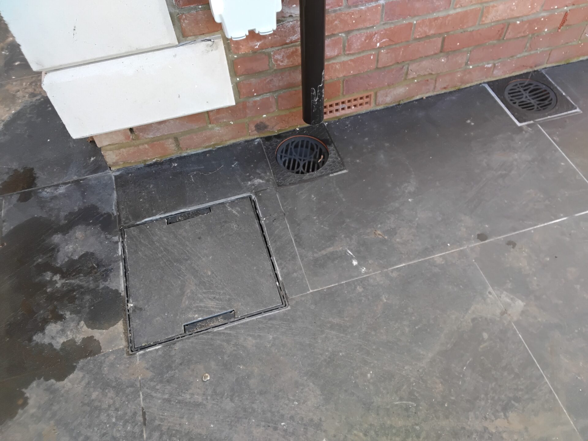 Downpipe too short for the gulley, missing a pipe bracket