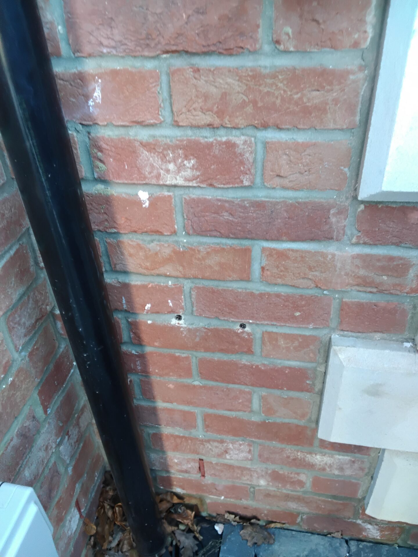 White stains on brickwork under window